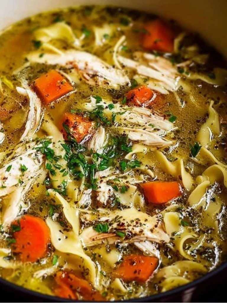 This Homemade Chicken Noodle Soup is the ultimate comfort food classic. Brimming with juicy shredded chicken, tender egg noodles, and garden-fresh vegetables, all gently simmered in a rich, herbaceous broth. It’s perfect for cozy evenings or quick healing meals. Whether made with leftover roast chicken or from scratch, every spoonful feels like home.