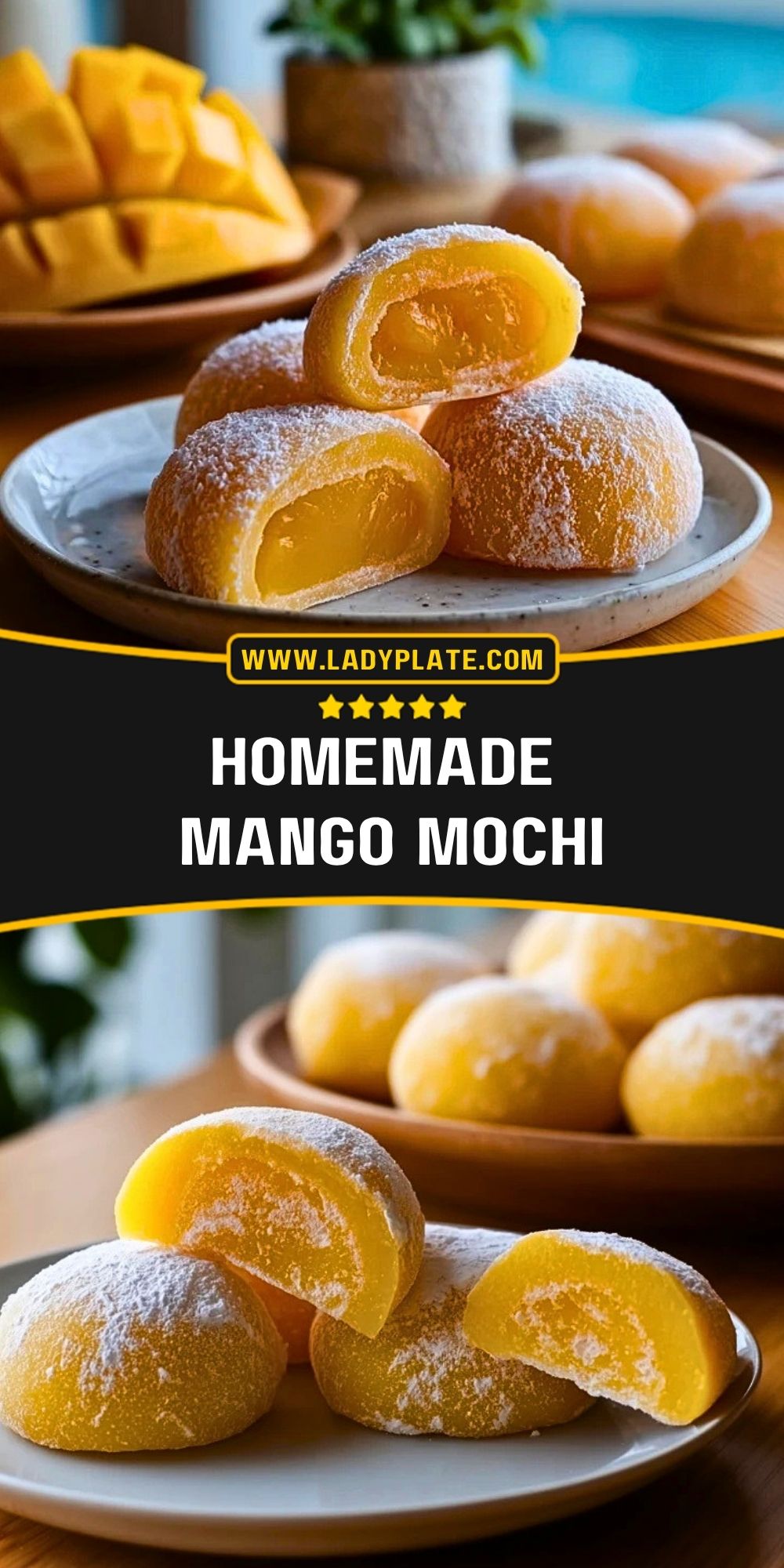 Save this Homemade Mango Mochi for your next dessert craving and keep it handy for warm-weather baking days, tea parties, or sweet little homemade treats. You can also find more daily recipe inspiration on LadyPlate on Pinterest.