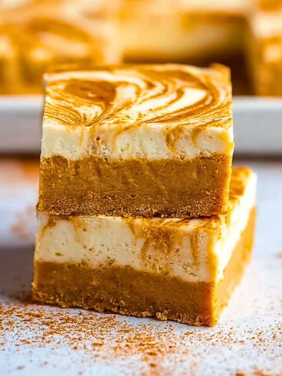 Each bite delivers a perfectly spiced pumpkin layer topped with a velvety swirl of cheesecake, all stacked atop a crisp no-bake crust. They’re simple, impressive, and the ultimate make-ahead treat for Thanksgiving, potlucks, or a cozy weekend in.
