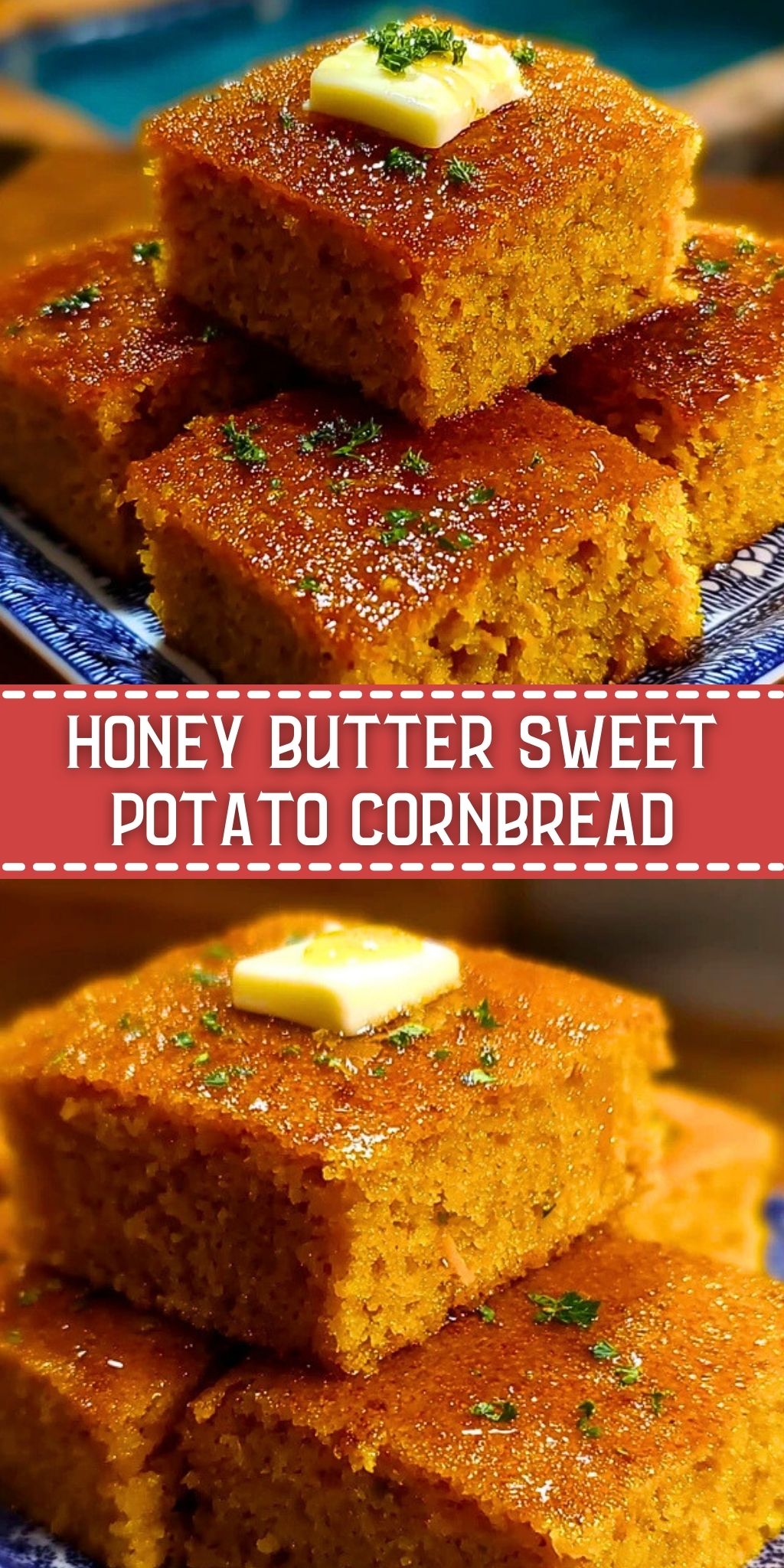 Serve Honey Butter Sweet Potato Cornbread warm from the oven when the honey glaze is still glistening. It pairs wonderfully with stews, braised greens, BBQ, or even breakfast alongside scrambled eggs. For a slightly indulgent treat, add a pat of salted butter on top—it melts into the crumb and balances the sweetness beautifully.