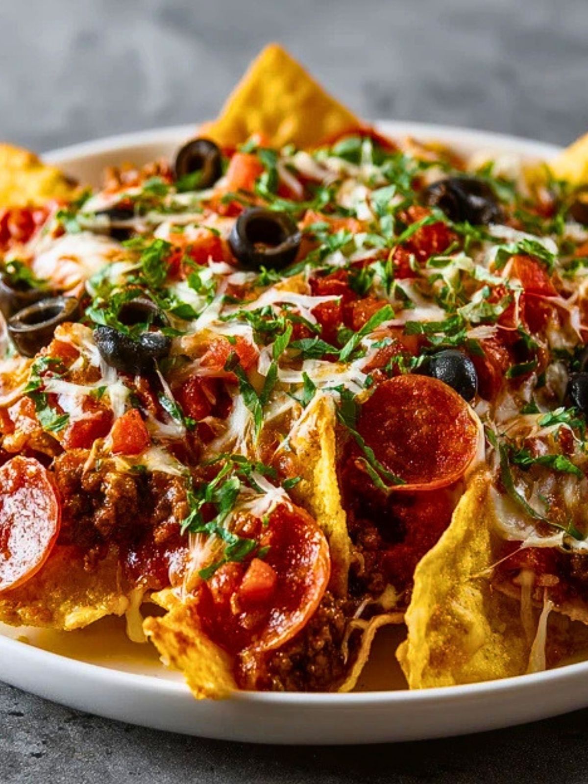 Italian Nachos Chicago-Style is a bold, cheesy party platter that turns crispy tortilla chips into an easy dinner, game day appetizer, or fun shareable snack. Loaded with Italian sausage, marinara, mozzarella, pepperoni, olives, and fresh herbs, this easy recipe is packed with comfort food flavor and works perfectly for dinner ideas, party food ideas, and quick crowd-pleasing meals.