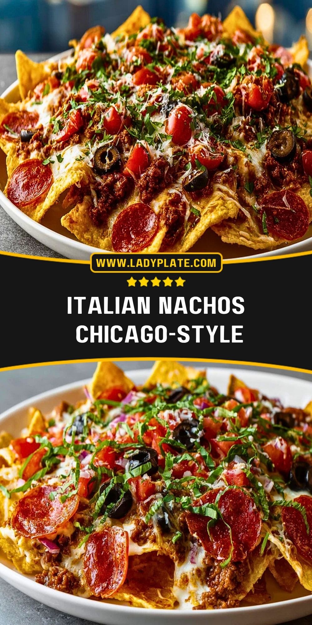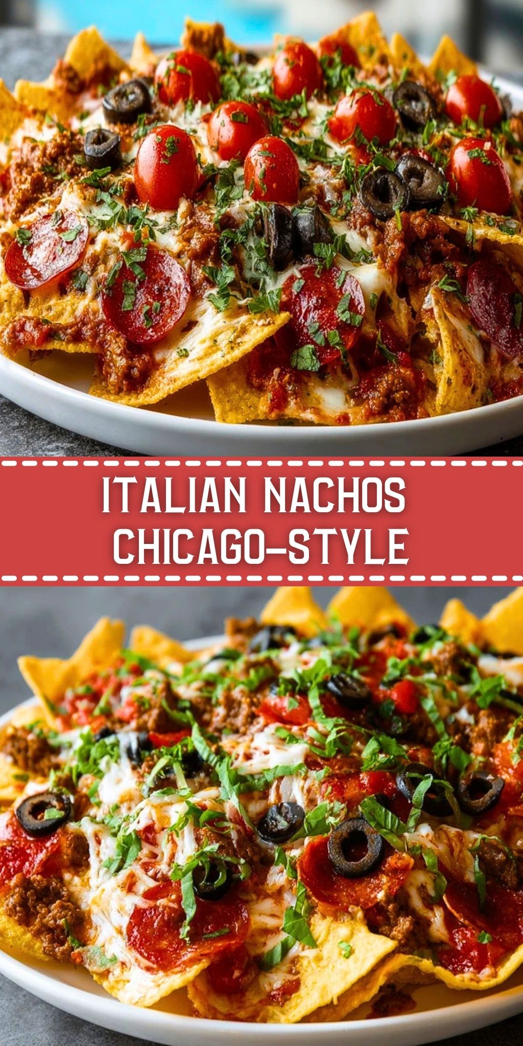 Italian Nachos Chicago-Style is best served immediately while the chips are still crisp and the cheese is warm and stretchy. Set it out as a party appetizer, split it for a casual dinner, or pair it with a crisp green salad for a more complete meal. A small bowl of warm marinara on the side also works well for dipping.