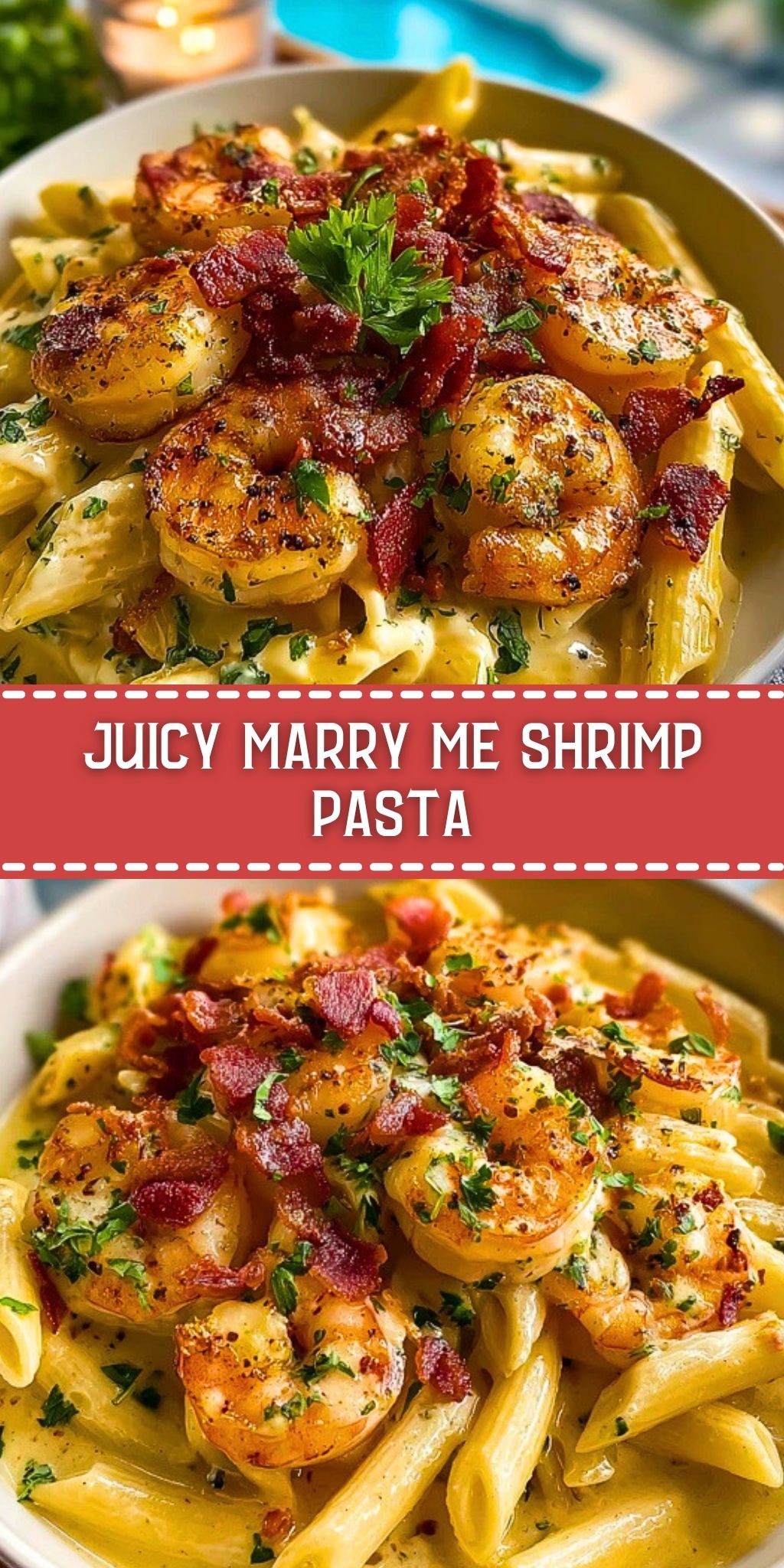 This juicy Marry Me Shrimp Pasta is a rich and creamy easy dinner packed with tender shrimp, crispy bacon, parmesan, garlic, and lemon. It is one of those easy recipe favorites that feels special enough for date night but simple enough for busy weeknights, making it perfect for dinner ideas, comfort food cravings, and quick homemade food ideas.