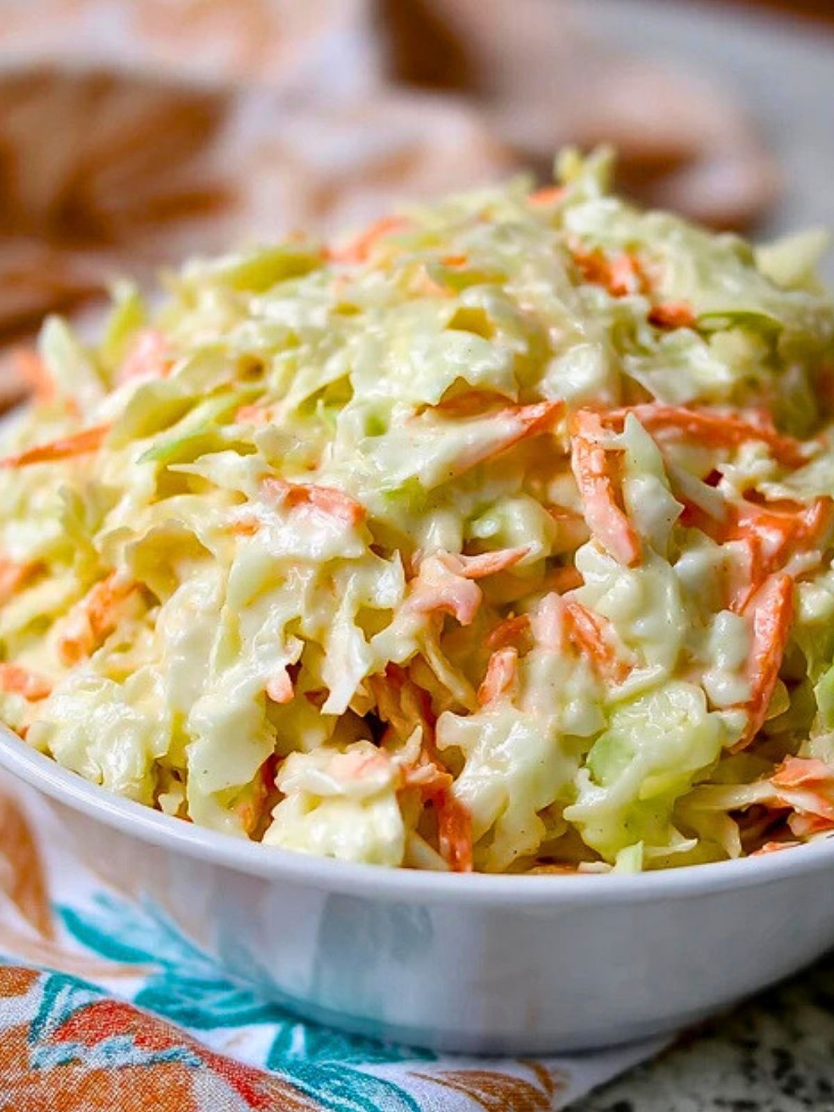 Cover and refrigerate for at least 4 hours—preferably overnight. This allows the flavors to meld and the coleslaw to soften just slightly, creating that authentic creamy crunch.