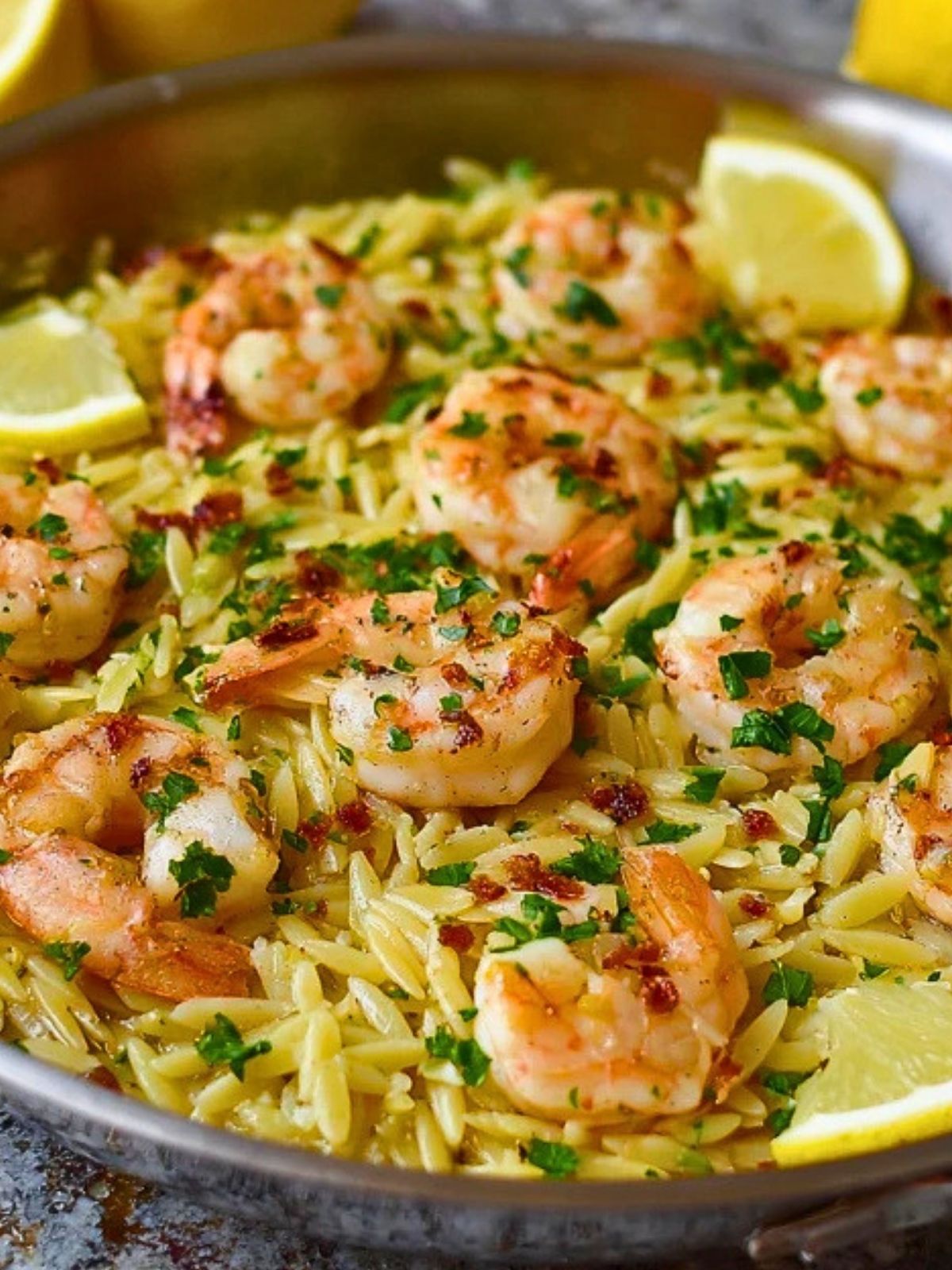 It is the kind of meal that feels a little special without making the cooking process complicated. The shrimp cook quickly, the orzo soaks up all that savory flavor, and the fresh herbs and lemon keep the whole dish light enough for spring and summer dinners while still being cozy enough for any night of the week.