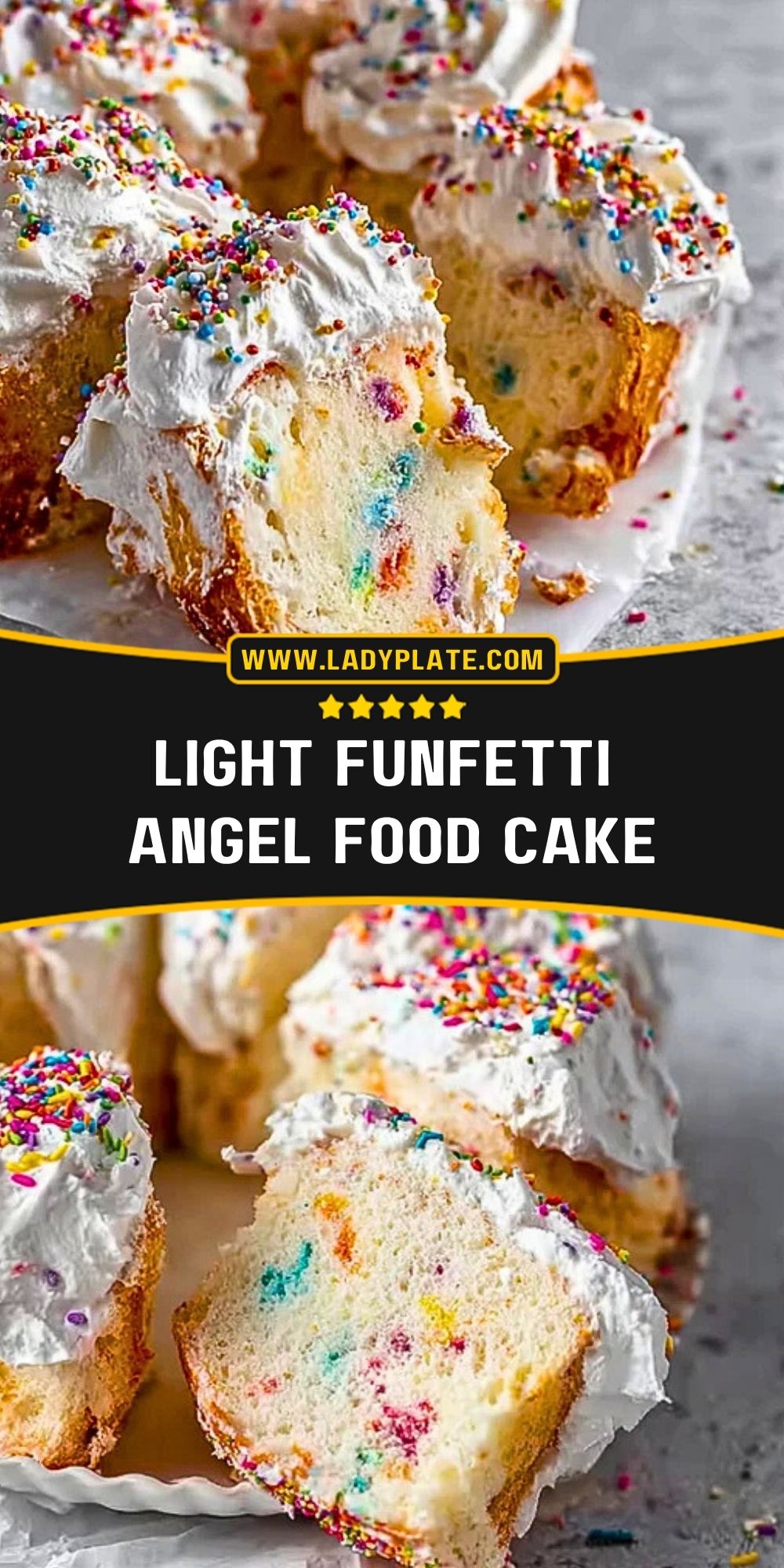 Angel food cake fans looking for even more airy and festive ideas should definitely browse my full Pinterest board: LadyPlate on Pinterest. I share daily recipes, decorating ideas, and shortcuts for all kinds of sweet bakes.