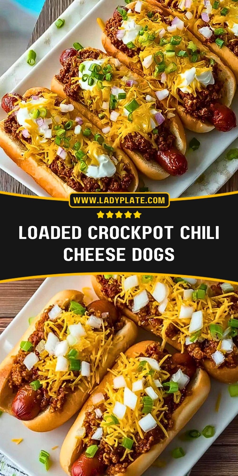 Loaded Crockpot Chili Cheese Dogs