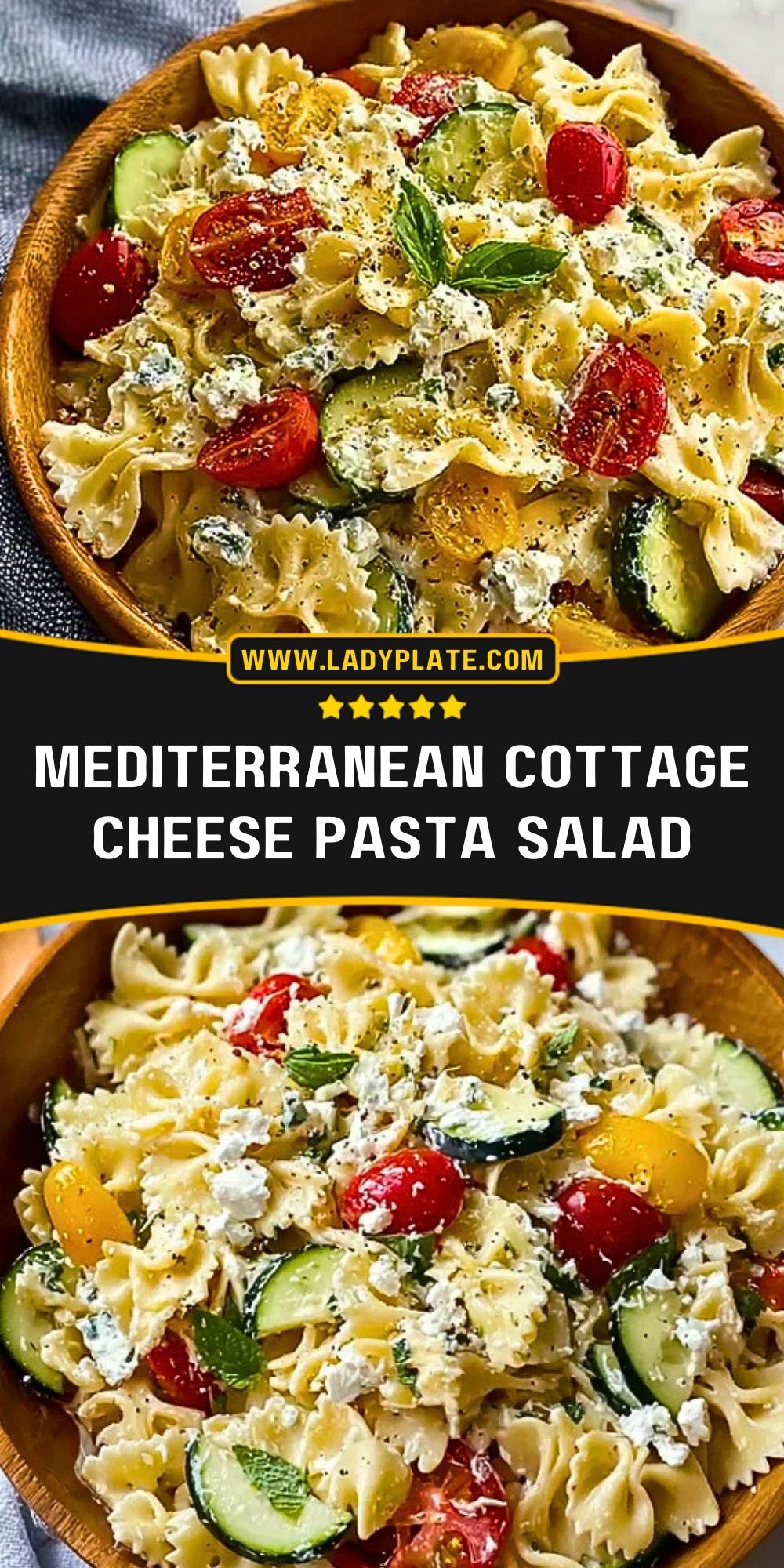 A fresh, creamy, and satisfying pasta salad perfect for quick lunches, easy dinners, and meal prep. Mediterranean Cottage Cheese Pasta Salad combines tender bowtie pasta, creamy cottage cheese, crisp cucumbers, and juicy cherry tomatoes with bright lemon and herbs. This easy recipe is packed with protein and Mediterranean flavor, making it a great choice for healthy pasta salad recipes, quick lunch ideas, picnic food ideas, and light dinner ideas.
