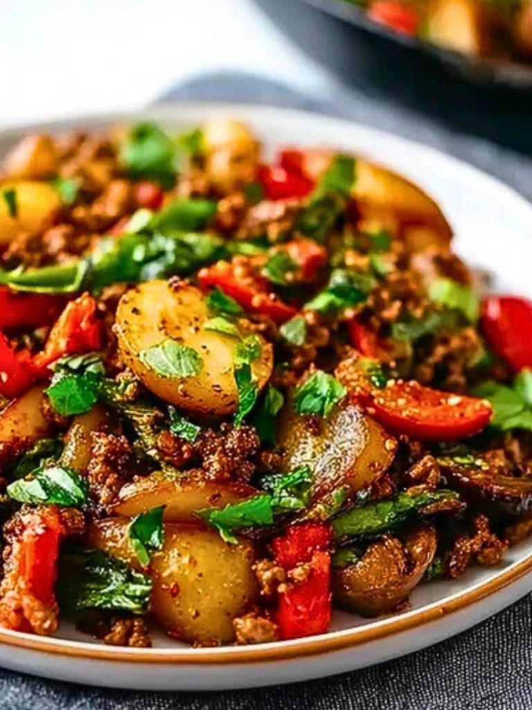A hearty one-skillet meal made with ground beef, baby potatoes, and vibrant Mediterranean vegetables. Perfect for busy weeknights, this dish offers rich flavor, balanced nutrition, and quick cleanup. Customizable for low-carb or dairy-free diets, it’s a wholesome family favorite that reheats beautifully.