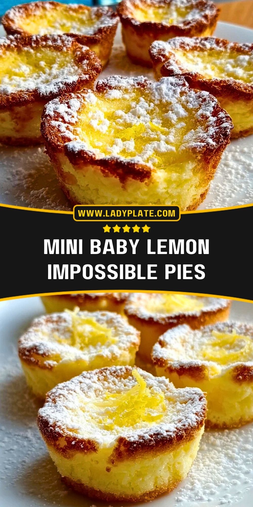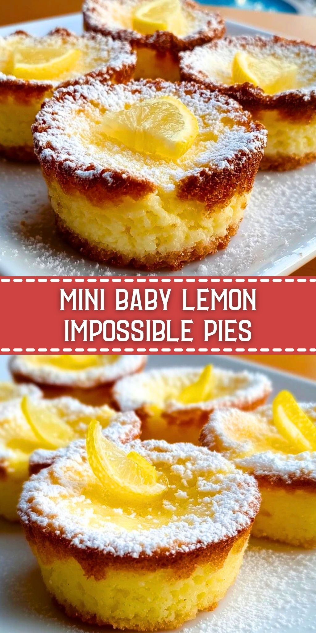 These Mini Baby Lemon Impossible Pies are a magical, one-bowl dessert that forms their own crust as they bake. Each bite is filled with zesty lemon flavor, a soft custard-like center, and golden edges that give the illusion of a delicate crust. Ideal for brunches, picnics, or afternoon tea, these cheerful little pies are as easy to make as they are delightful to eat.