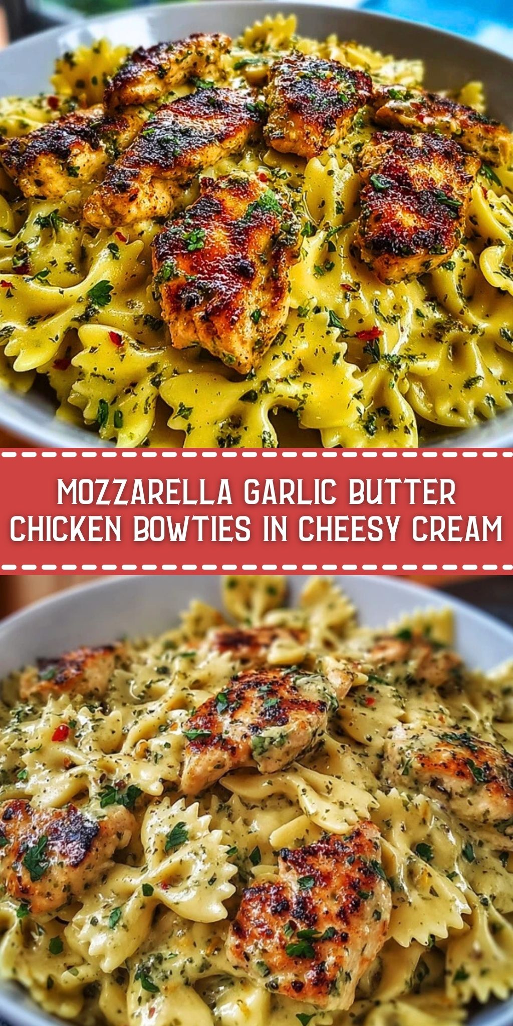 Craving something irresistibly creamy, cheesy, and loaded with garlicky comfort? Let me introduce you to this mouthwatering Mozzarella Garlic Butter Chicken Bowties in Cheesy Cream — a dish that checks all the boxes: tender chicken, silky pasta, and a velvety sauce so good you’ll want to lick the spoon clean.