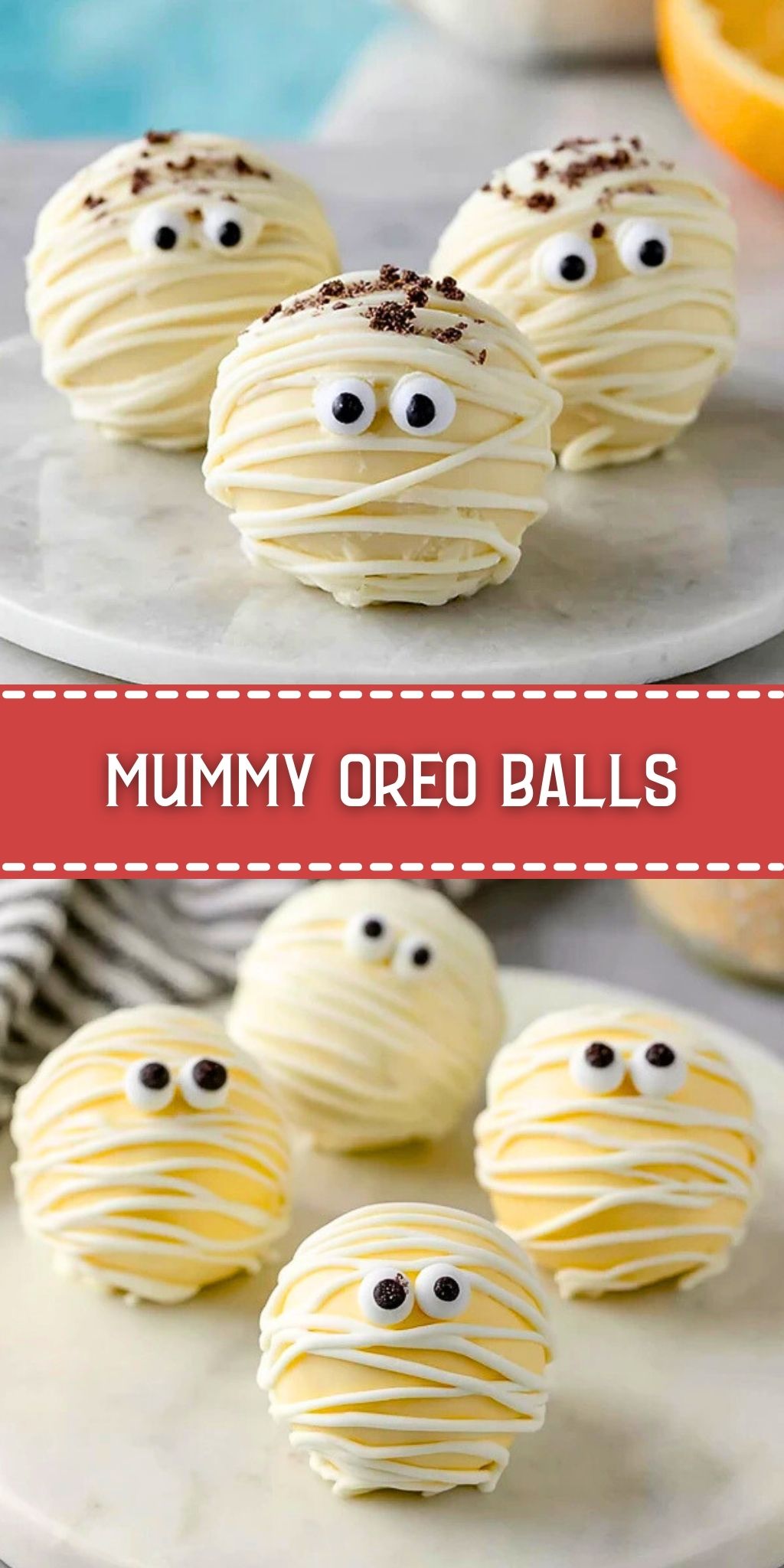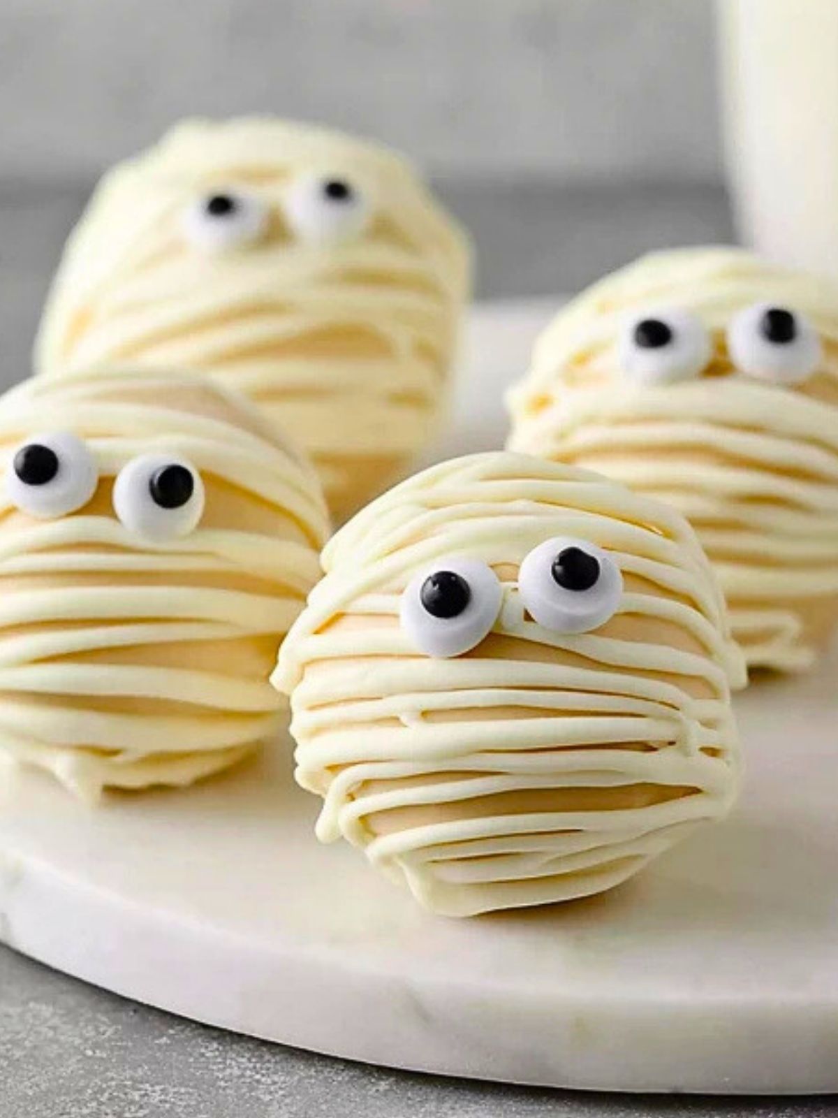 These Mummy Oreo Balls are the perfect spooky-sweet treat for Halloween. A no-bake dessert with a creamy Oreo-cream cheese center, wrapped in white chocolate and finished with googly eyes for a fun, mummy-like appearance. Great for parties, easy to prep, and a delight for kids and adults alike.