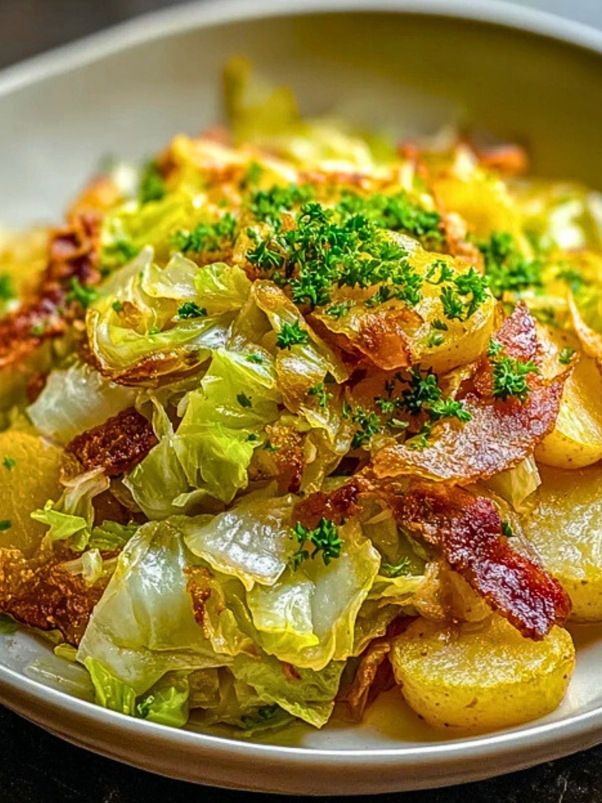 This dish is best served hot straight from the skillet, when the potatoes are still crisp at the edges and the cabbage tender. Pair it with warm cornbread or a side of eggs for a filling breakfast, or serve it solo as a rustic dinner. A sprinkle of fresh herbs like parsley adds a touch of brightness.