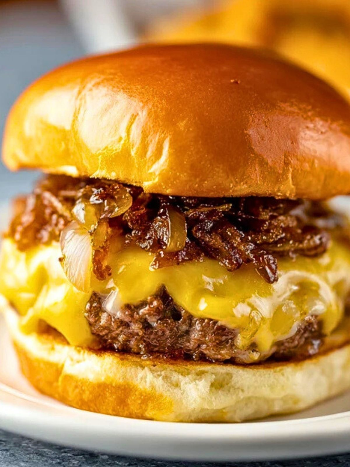 This burger is all about flavor-packed efficiency. Paper-thin slices of onion are pressed into the beef patty as it cooks, caramelizing directly into the meat and creating a mouthwatering crust. Topped with melted cheese and tucked inside a soft bun, it’s the kind of comfort food that brings a diner-style experience straight to your kitchen.