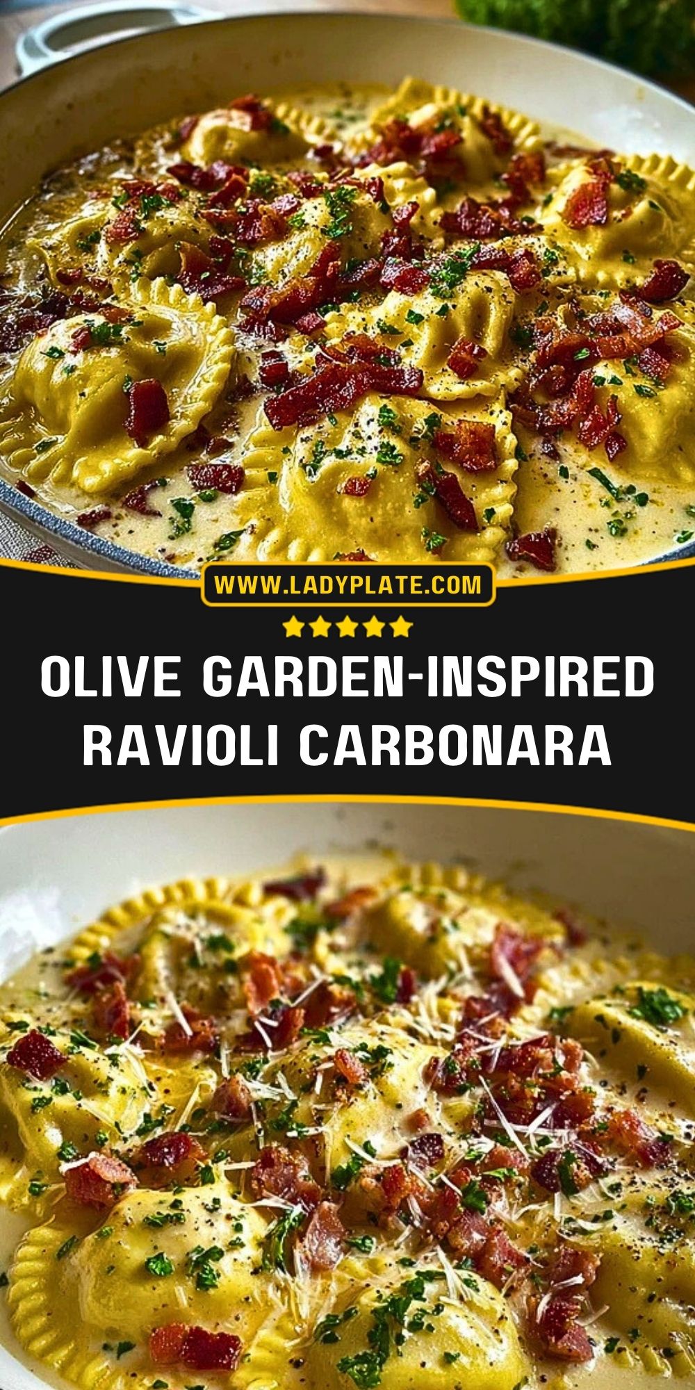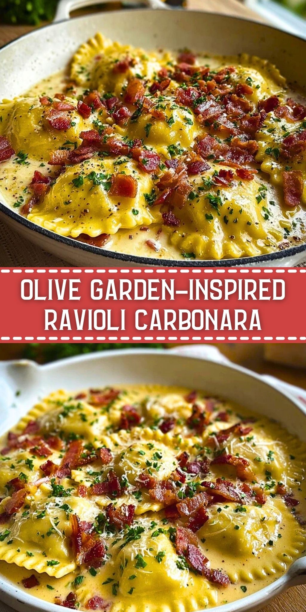 This Olive Garden-Inspired Ravioli Carbonara recipe is a creamy, comforting twist on a classic. Filled with cheese-stuffed ravioli, crispy bacon, and a rich Parmesan cream sauce, this dish is perfect for a restaurant-quality dinner at home.
