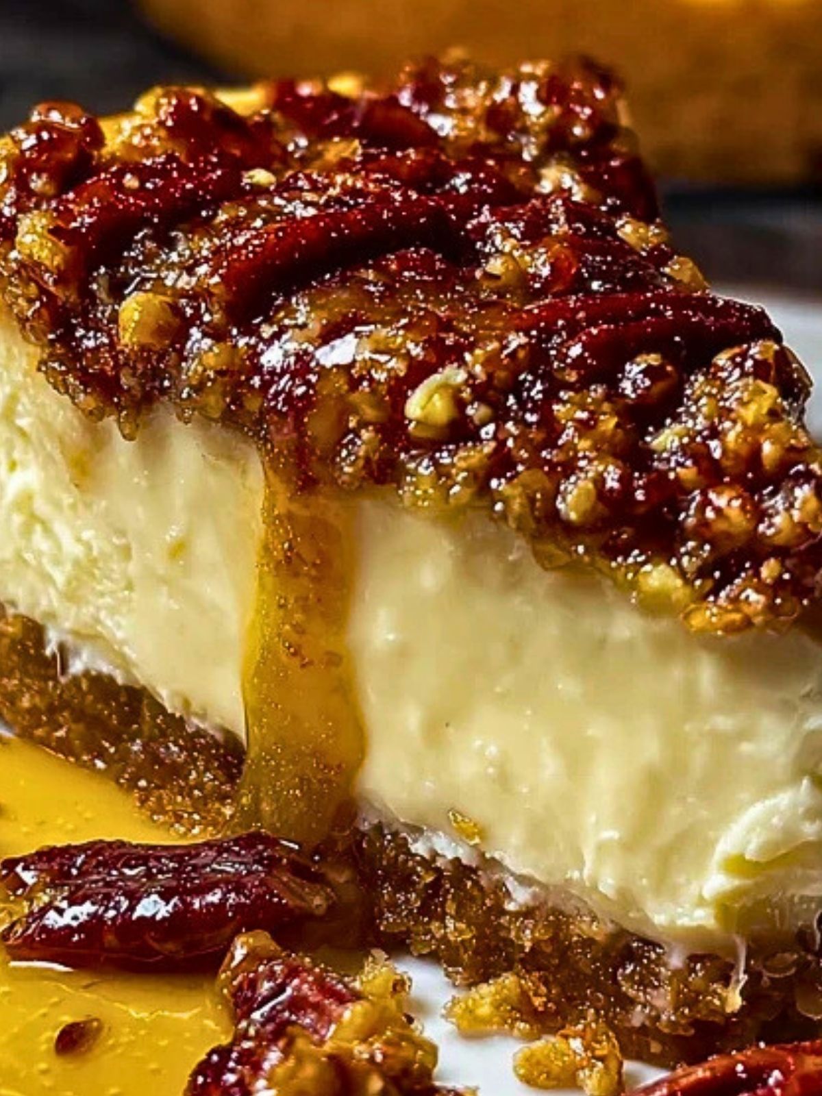The magic of this dessert lies in its balance—the crunch of toasted pecans wrapped in caramel-like syrup, paired with the cool creaminess of cheesecake. It’s sweet, nutty, velvety, and rich in texture and flavor. Whether you’re serving it at Thanksgiving or just want to impress someone with dessert, this one never disappoints.