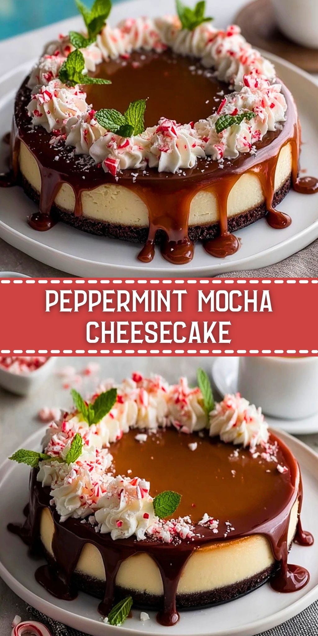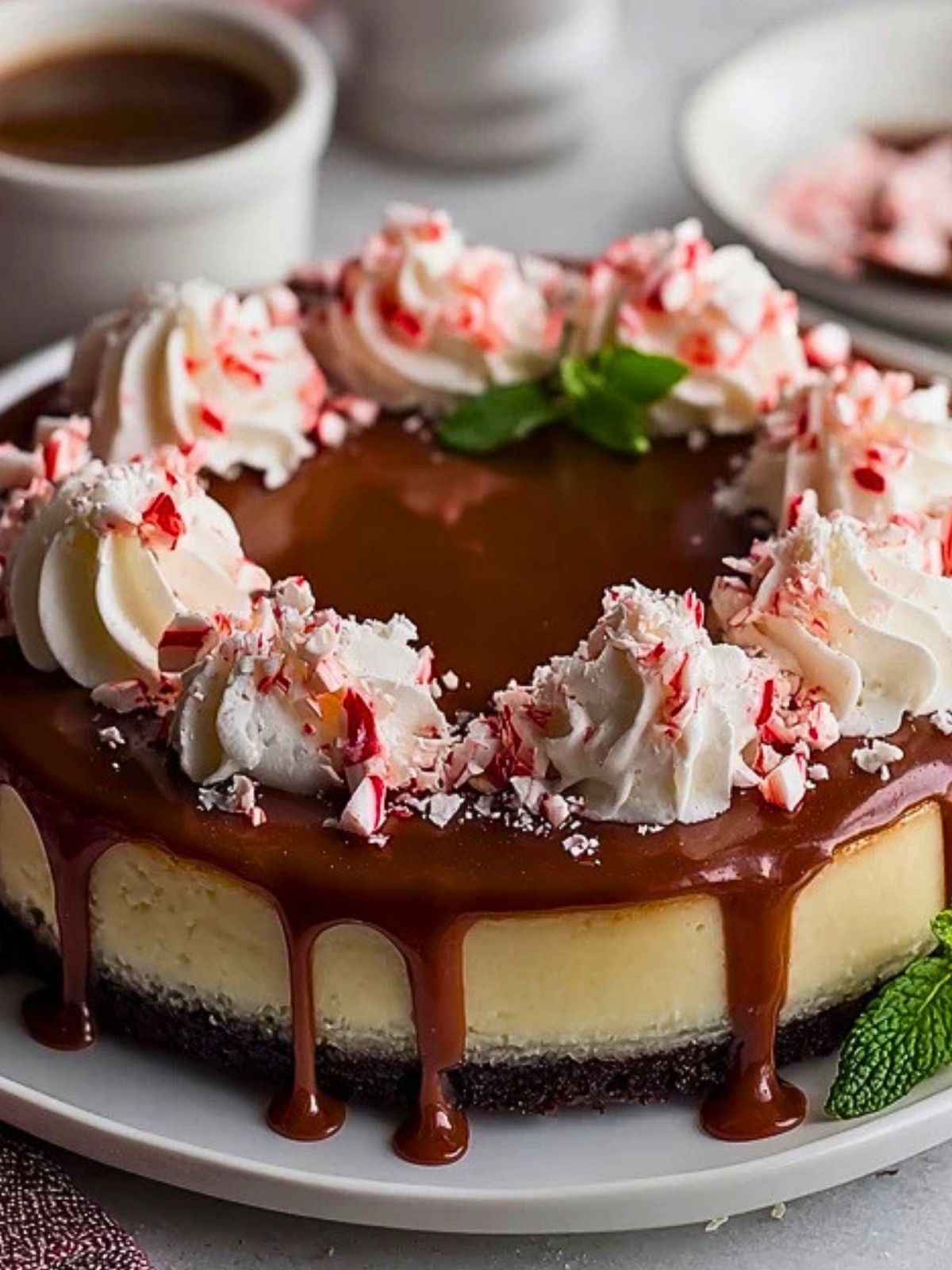 This is the kind of dessert that instantly sets the mood. The chocolate cookie crust gives it a rich base, the cheesecake layer stays smooth and tangy, and the peppermint mocha finish adds that café-style flavor people recognize right away. It is festive, dramatic, and surprisingly manageable when you break it into simple steps.
