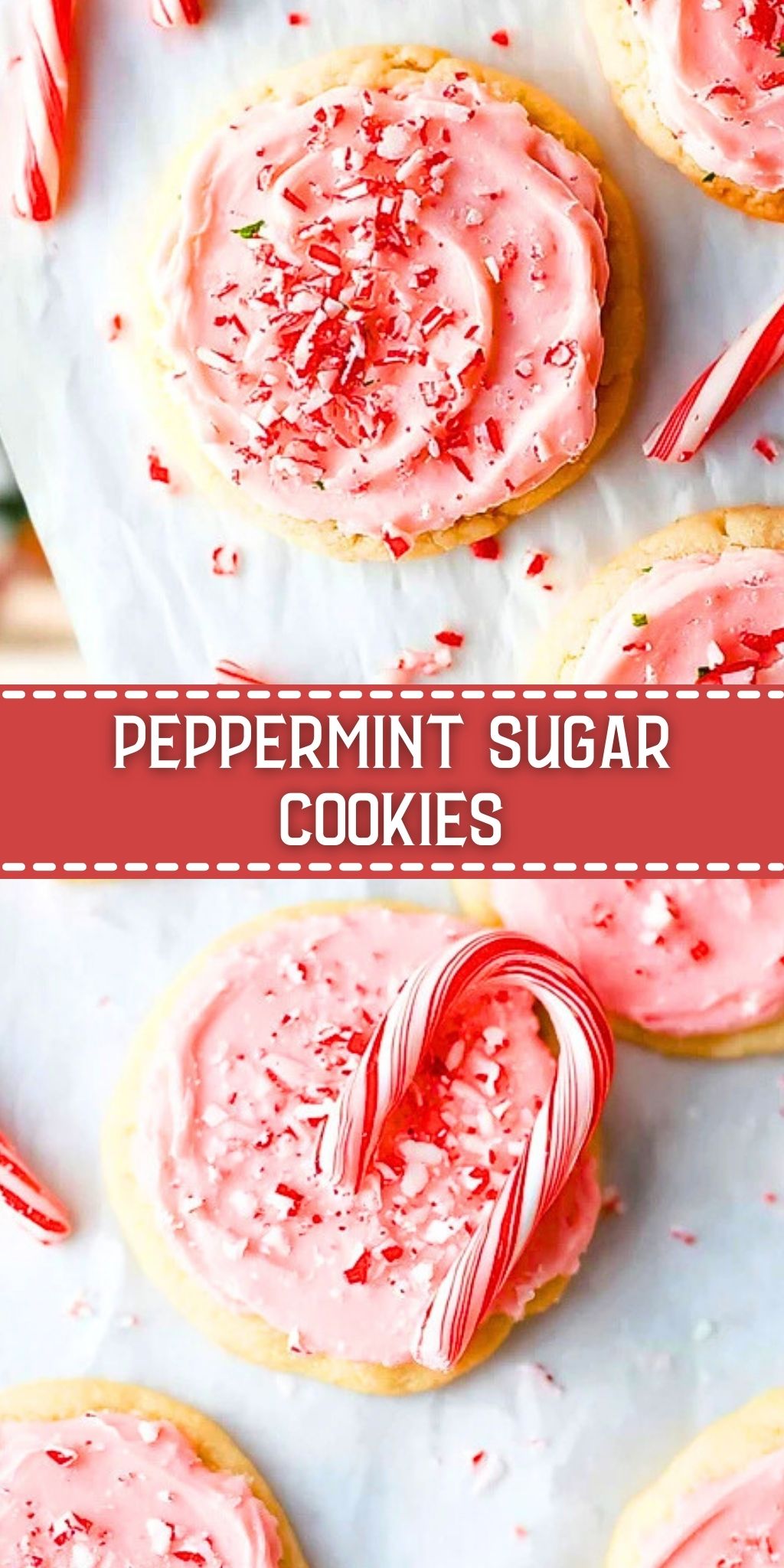 Soft, buttery Peppermint Sugar Cookies topped with a pink peppermint frosting and crushed candy canes—perfect for the holidays. These festive cookies are ideal for cookie exchanges, gifting, or enjoying with a hot cup of cocoa. Easy to make and irresistibly minty!