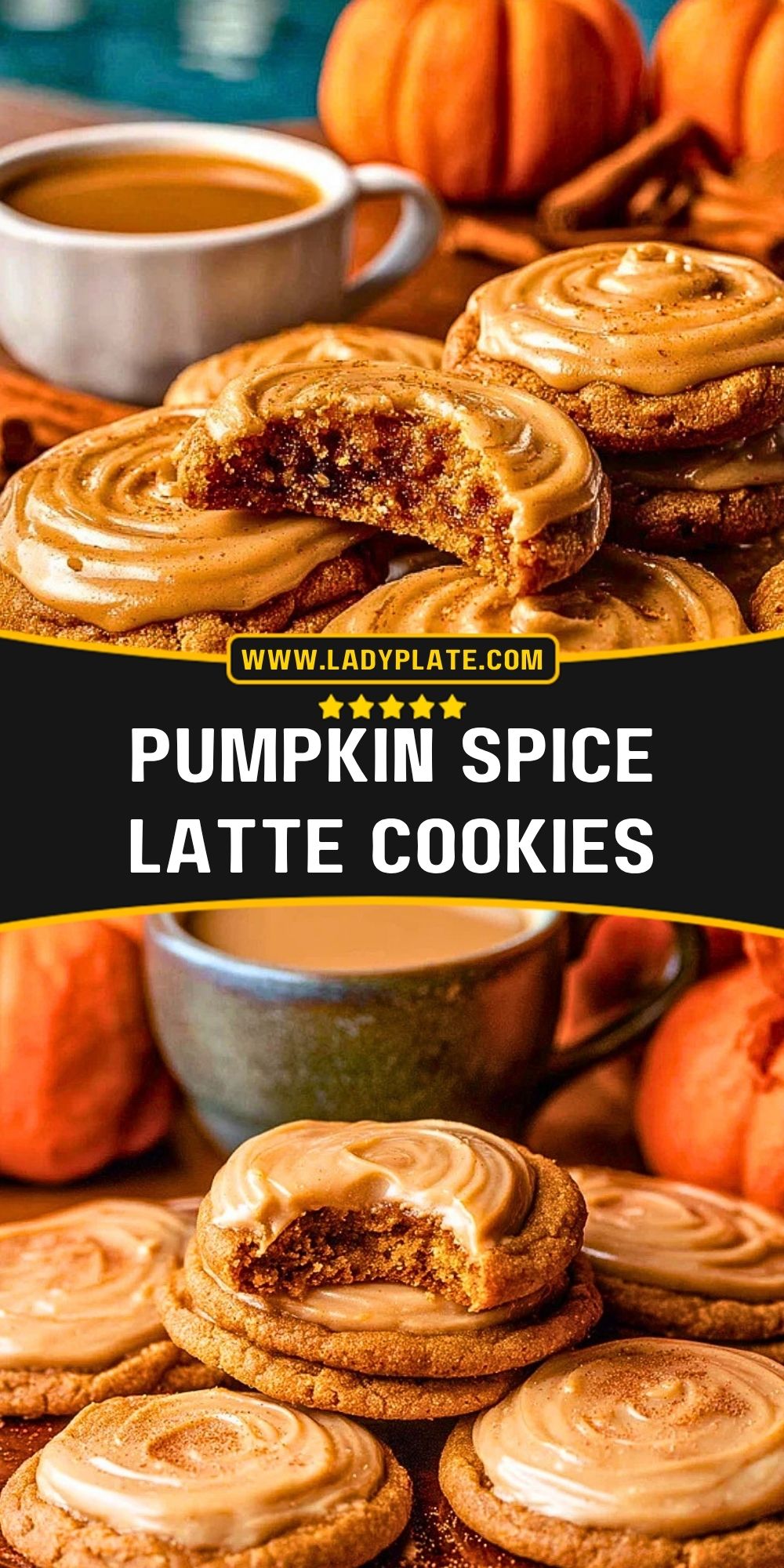 You can save these Pumpkin Spice Latte Cookies for your fall dessert boards and come back to them whenever a cookie craving hits. For more cozy baking inspiration and daily recipe ideas, take a look at my LadyPlate Pinterest recipe collection.