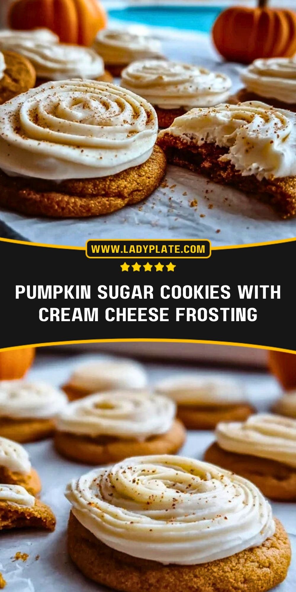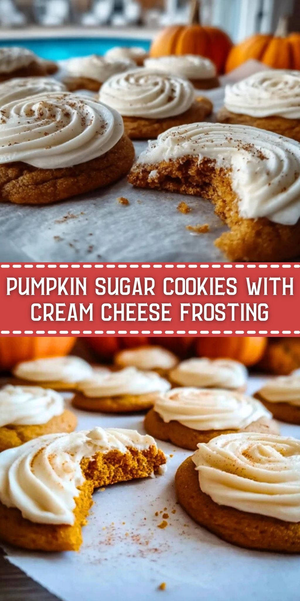 Keywords: pumpkin sugar cookies, fall cookies, cream cheese frosting, soft cookies