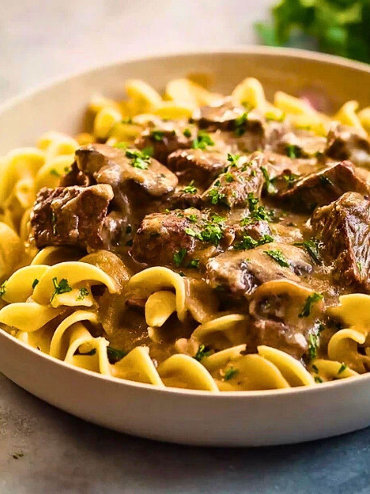Imagine fork-tender chunks of beef bathed in a creamy mushroom sauce, served over buttery egg noodles. It tastes like it simmered for hours, but it’s ready in under 40 minutes. This recipe is perfect for busy weeknights or cozy weekends when you need something warm and filling.
