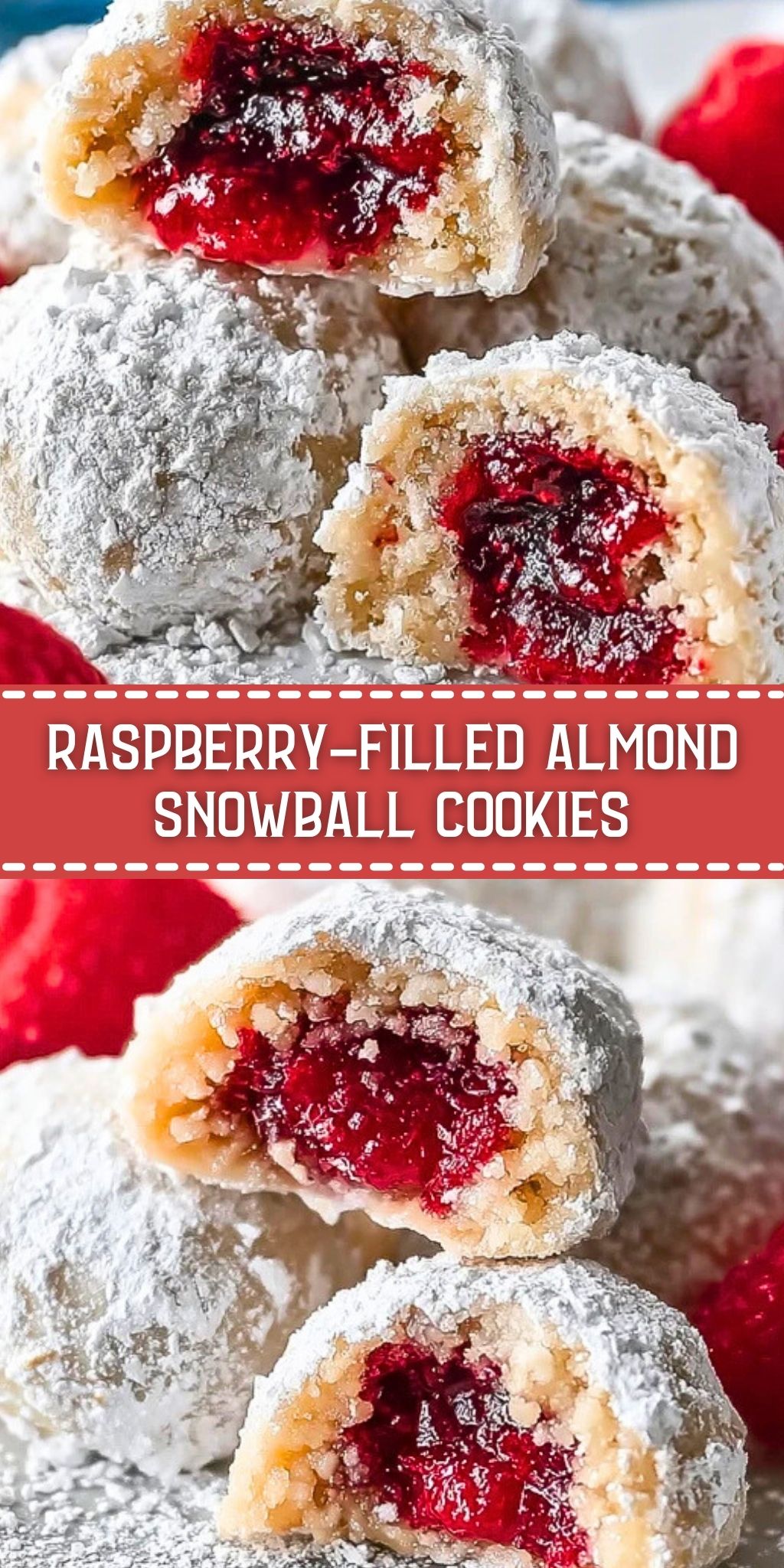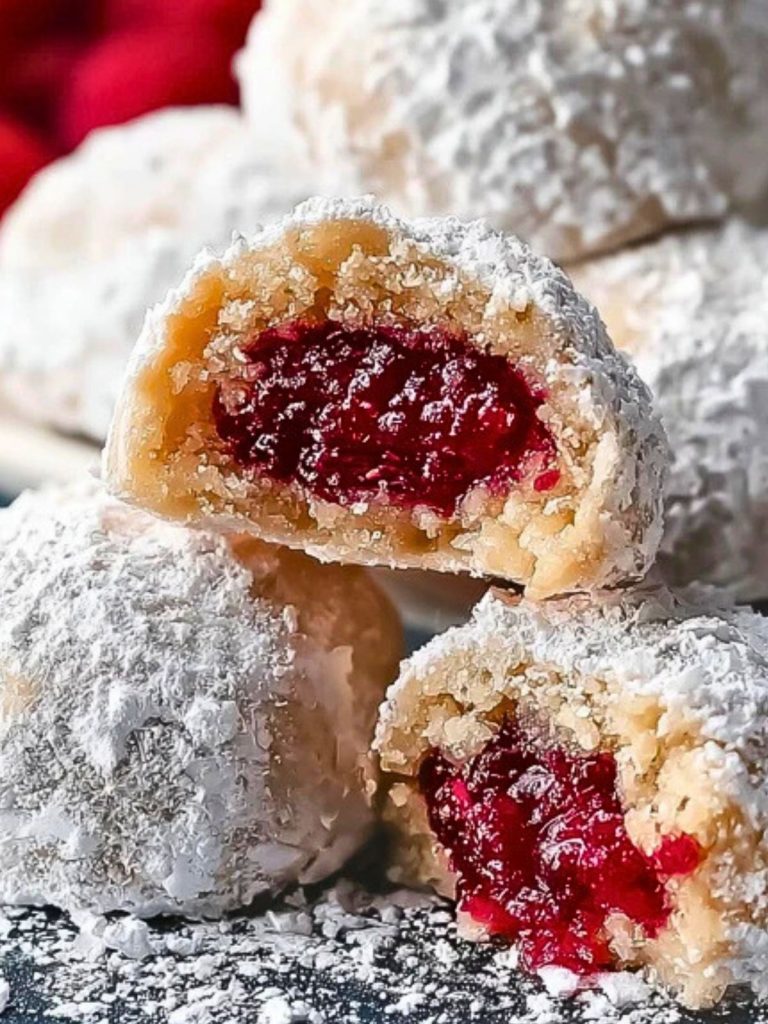 These Raspberry-Filled Almond Snowball Cookies are buttery and tender, with a hidden raspberry jam center. Rolled in powdered sugar for a snowy finish, they’re perfect for holidays, teatime, or a cozy sweet treat.