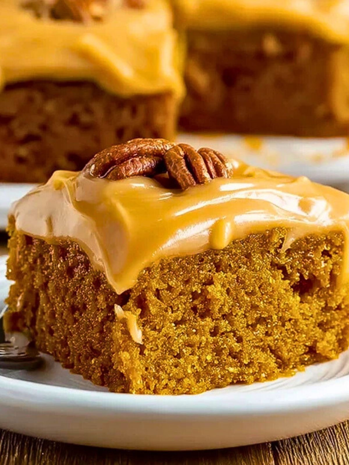 Spread the frosting generously over the cooled cake. Top with toasted pecans or a drizzle of extra caramel for a finishing touch.