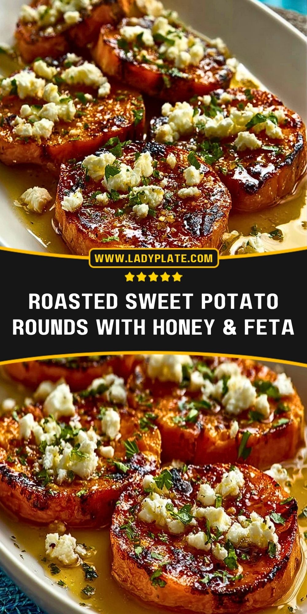 Keywords: roasted sweet potatoes, feta, honey, vegetarian, side dish