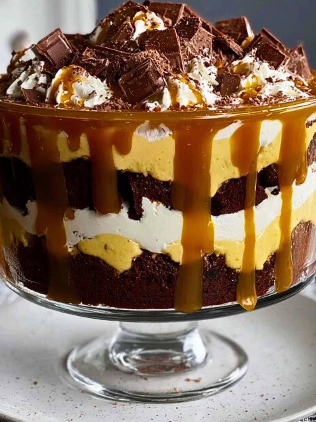 Unlike typical trifles that rely solely on fruit or sponge, this version leans into decadence. The contrast of salty-sweet caramel and dense chocolate is balanced by the fluffiness of the cream and the light tang of the cheesecake layer. Each spoonful is a mix of textures and flavors you won’t forget.