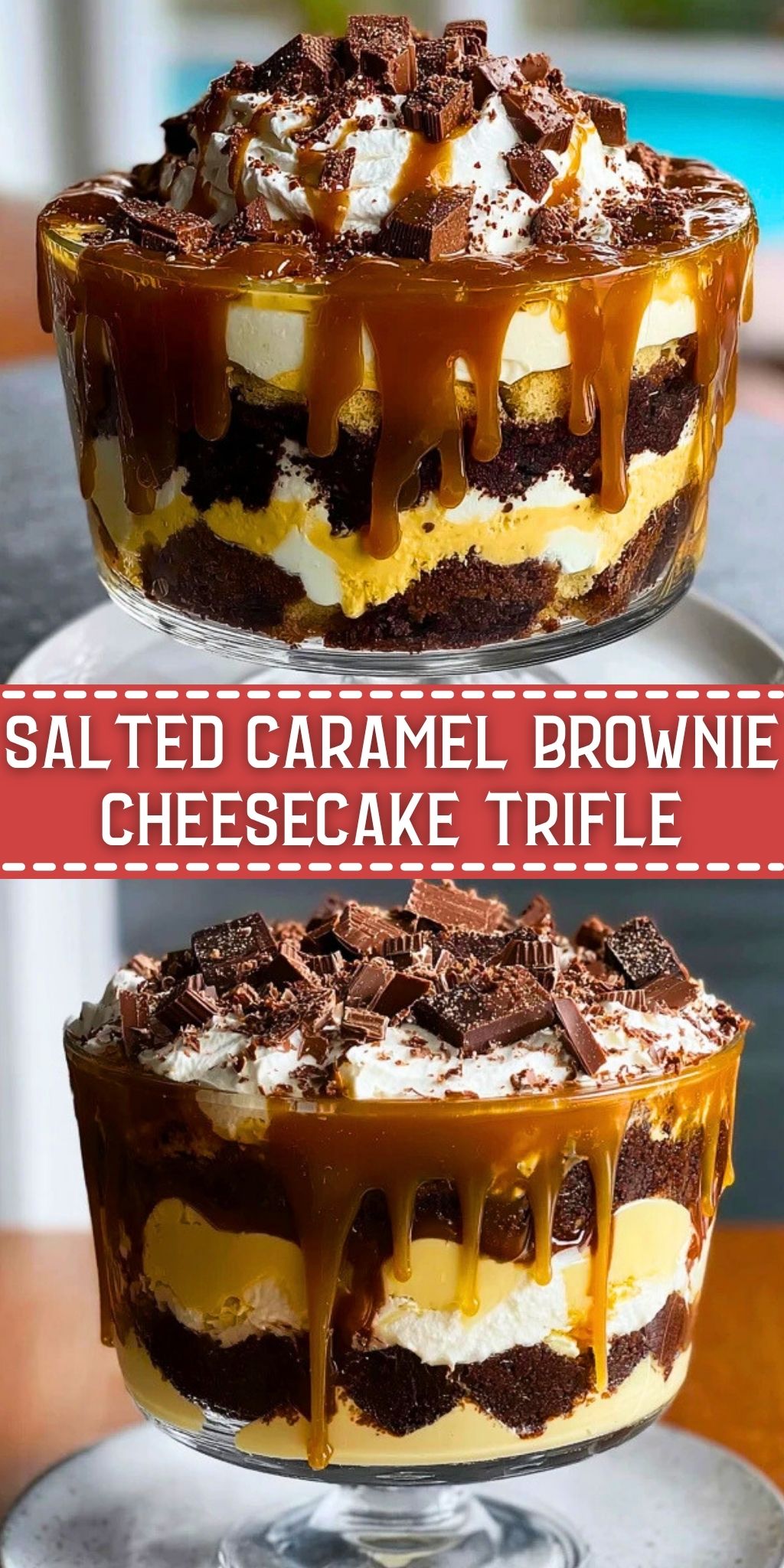 Craving a dessert that layers rich, fudgy indulgence with creamy cheesecake bliss? This Salted Caramel Brownie Cheesecake Trifle might just be your next sweet obsession. With gooey caramel dripping down the sides, chunky brownies, velvety cheesecake mousse, and whipped cream clouds, it’s the showstopper for holidays, parties, or cozy evenings in.