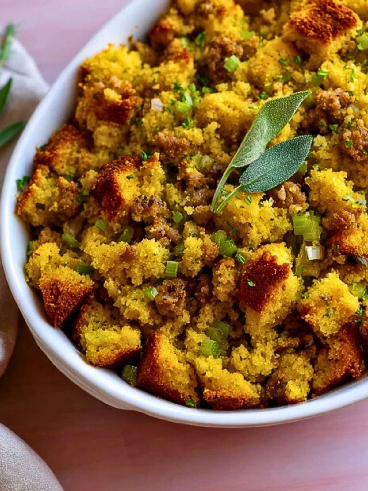 Craving a side dish that delivers bold Southern flavor and cozy comfort in every bite? This Sausage Southern Cornbread Stuffing is exactly what your holiday table needs—though honestly, it deserves a place at the table all year round. It’s savory, slightly sweet, loaded with aromatic herbs, and packed with juicy crumbles of sausage that soak up every bit of buttery goodness.