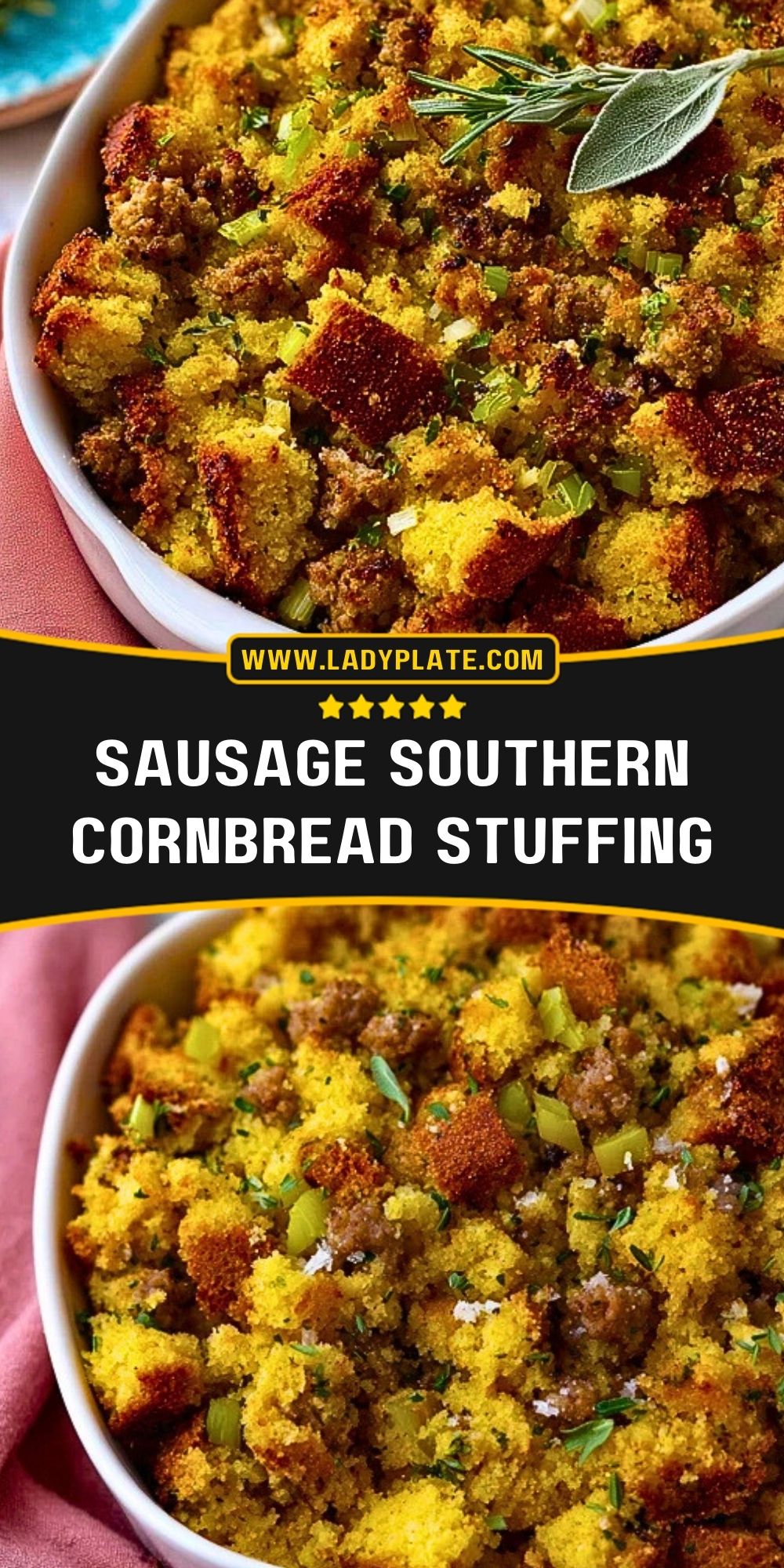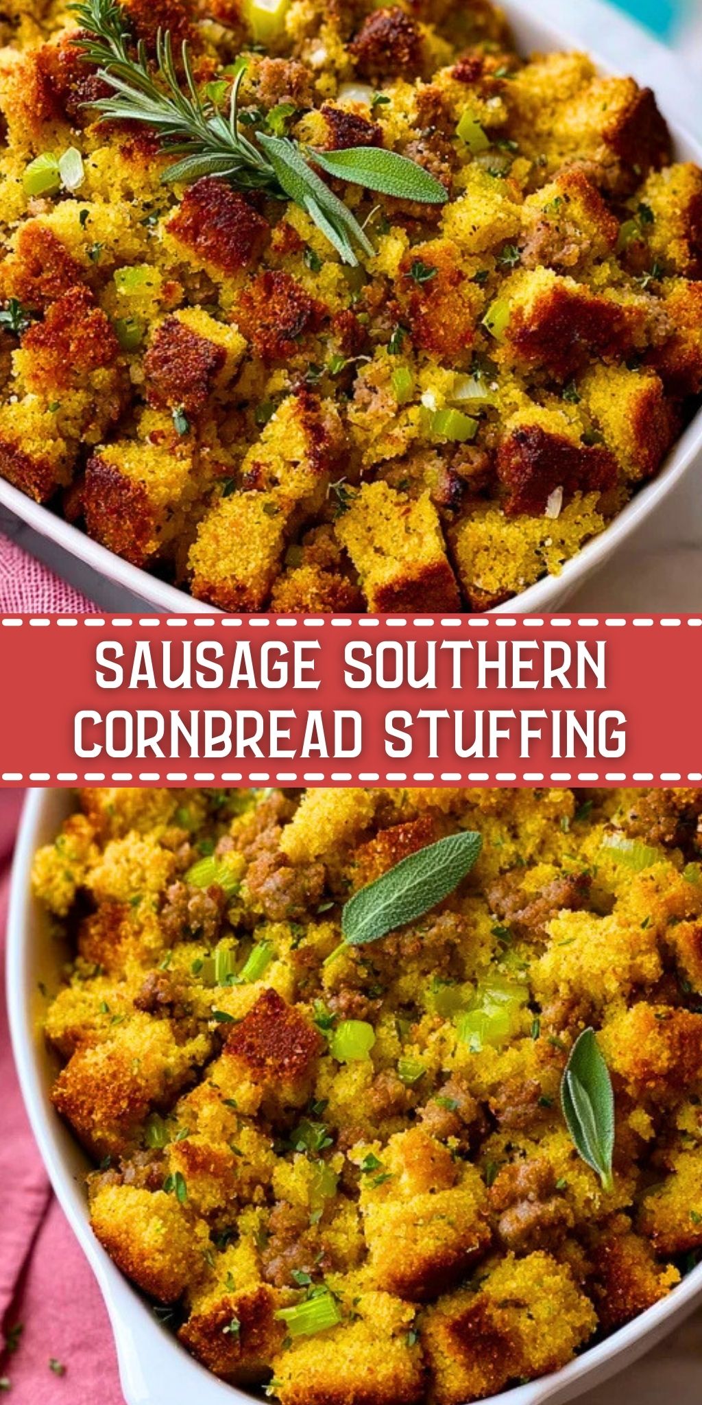 Serve Sausage Southern Cornbread Stuffing warm, straight from the oven. It pairs beautifully with roasted poultry, baked pork chops, or even a bowl of collard greens. Garnish with a few whole sage leaves or a sprinkle of chopped parsley for that final touch.