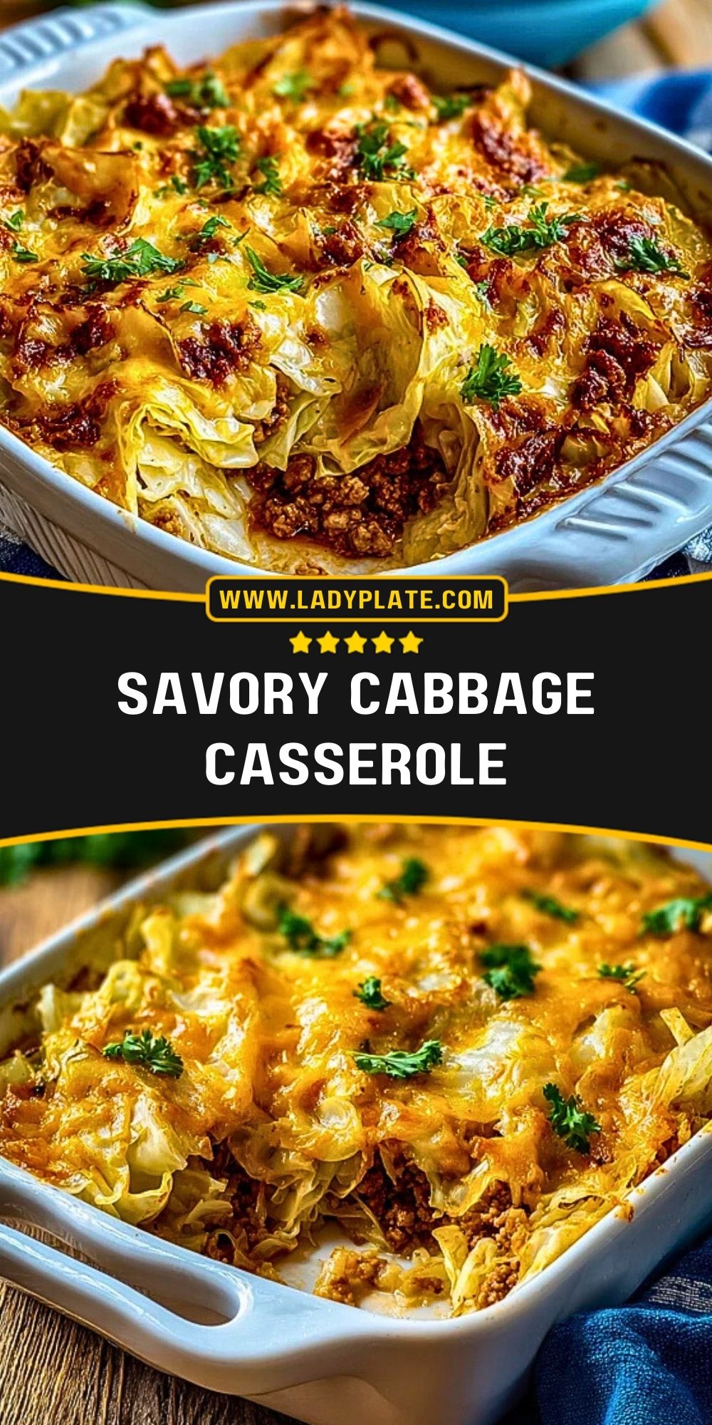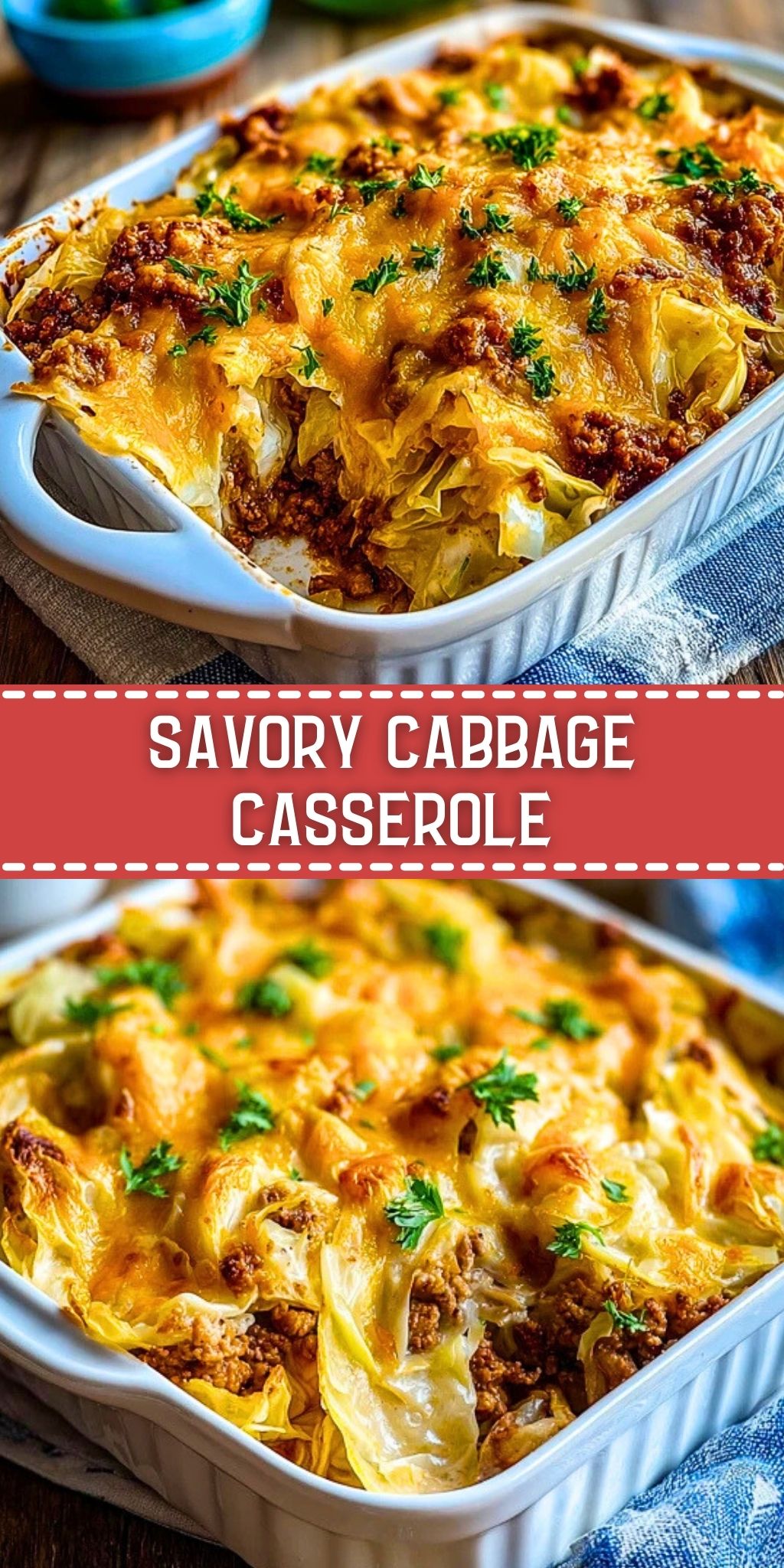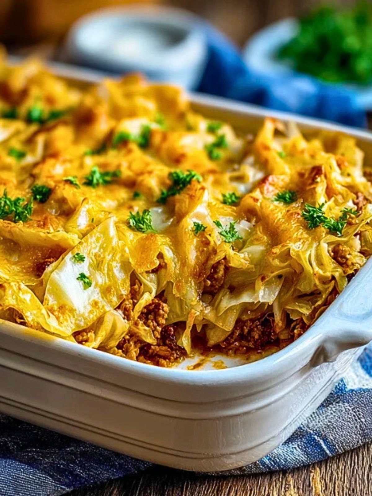 Cover the dish with foil and bake for 40 minutes to let the cabbage soften. Then remove the foil, sprinkle shredded cheese over the top, and return to the oven for 10-15 minutes, or until the cheese is melted and bubbly with golden edges.