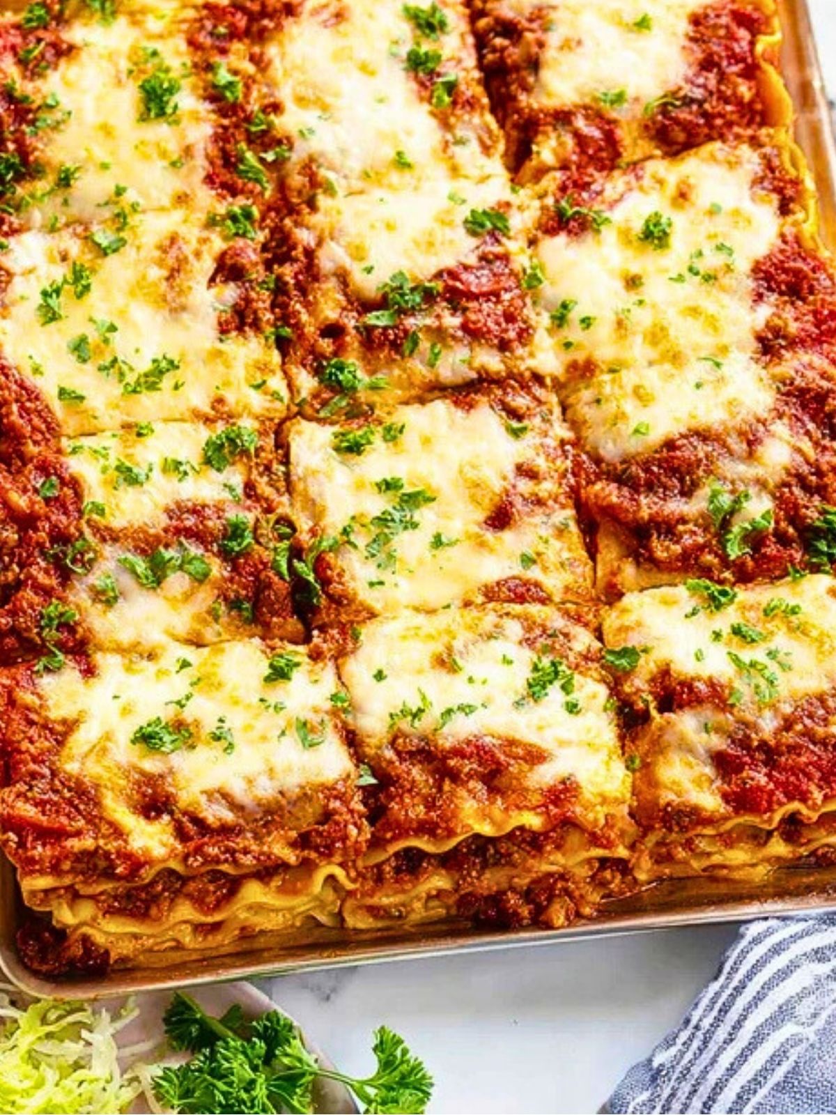 This version takes everything you love—bubbly cheese, hearty meat sauce, and tender noodles—and spreads it out in a single layer for maximum crispy edges and even cooking. No more soggy centers or tipping towers of lasagna. Each square bakes beautifully, making it perfect for portioning, storing, and reheating.