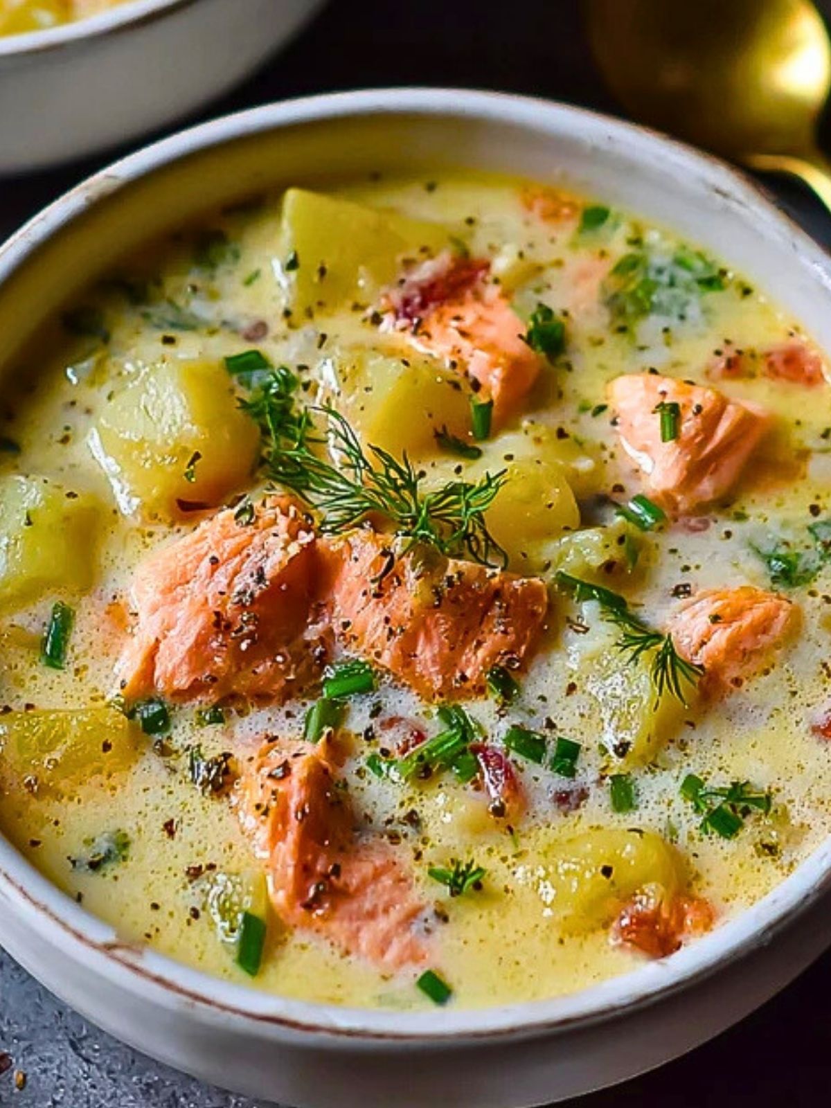A comforting and creamy chowder loaded with smoky salmon and tender potatoes. Perfect for chilly evenings or when you crave something warm and nourishing. This dish blends rustic charm with gourmet flavors, and it’s incredibly satisfying while remaining easy to prepare.