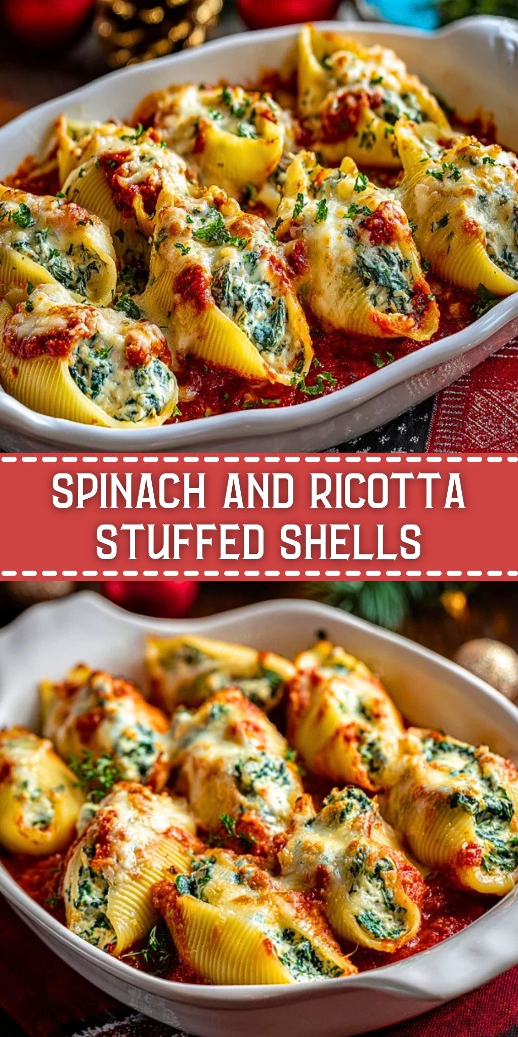 Spinach and Ricotta Stuffed Shells is best served hot from the oven when the cheese is melted and the sauce is bubbling around the edges. It pairs beautifully with garlic bread, a crisp green salad, or roasted vegetables if you want to round out the meal. For a heartier dinner, it also fits nicely beside an Italian-style starter or soup.