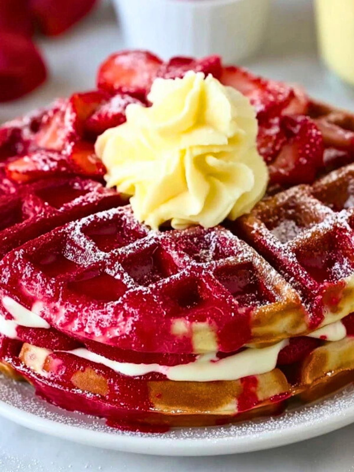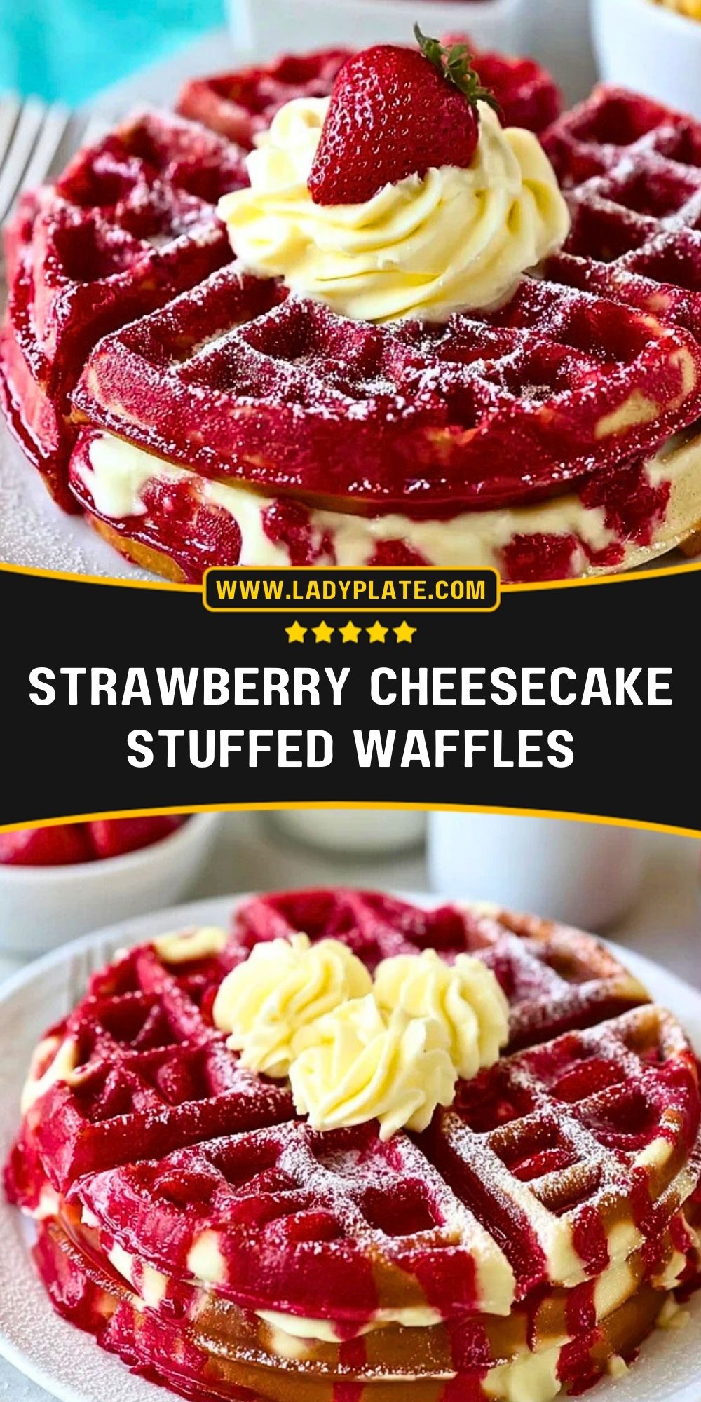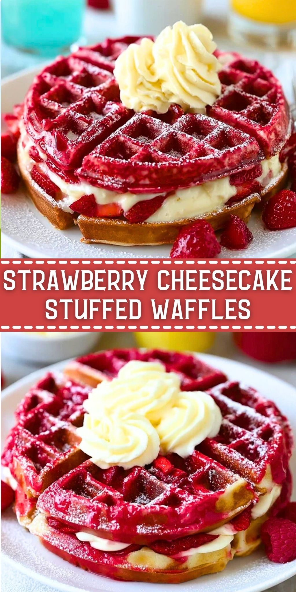 Strawberry Cheesecake Stuffed Waffles