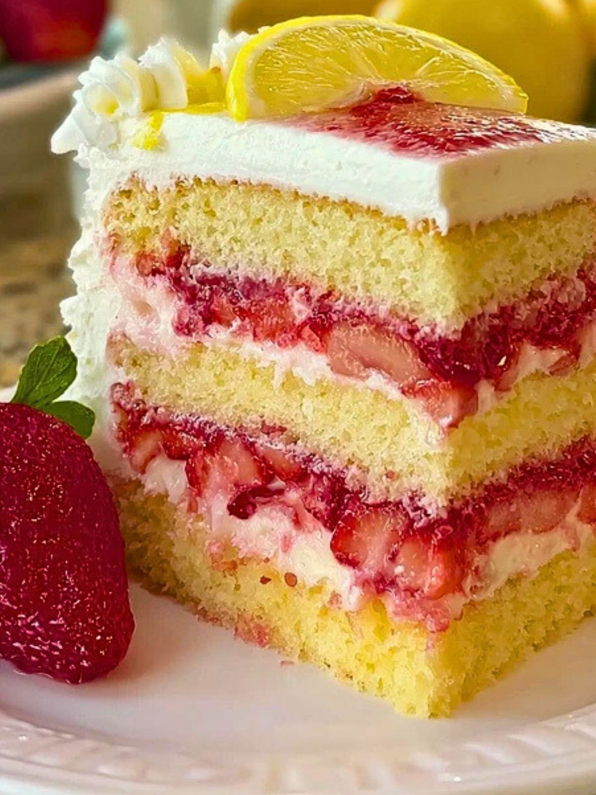 The real charm of this dessert is the balance—the zing of citrus brightens every bite, while the juicy strawberries bring a soft, jammy contrast. Layered between moist, buttery cake and topped with a lemon twist, this is one of those recipes you bookmark for birthdays, brunches, or simply because you deserve it.