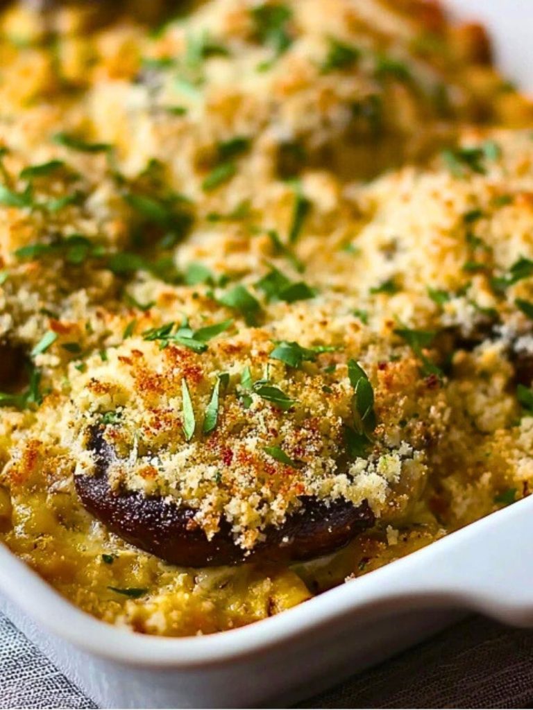 All the flavors of classic stuffed mushrooms turned into a cozy, creamy casserole. Perfect for weeknights, holidays, or as a crowd-pleasing side dish. Topped with golden breadcrumbs and packed with savory flavor.