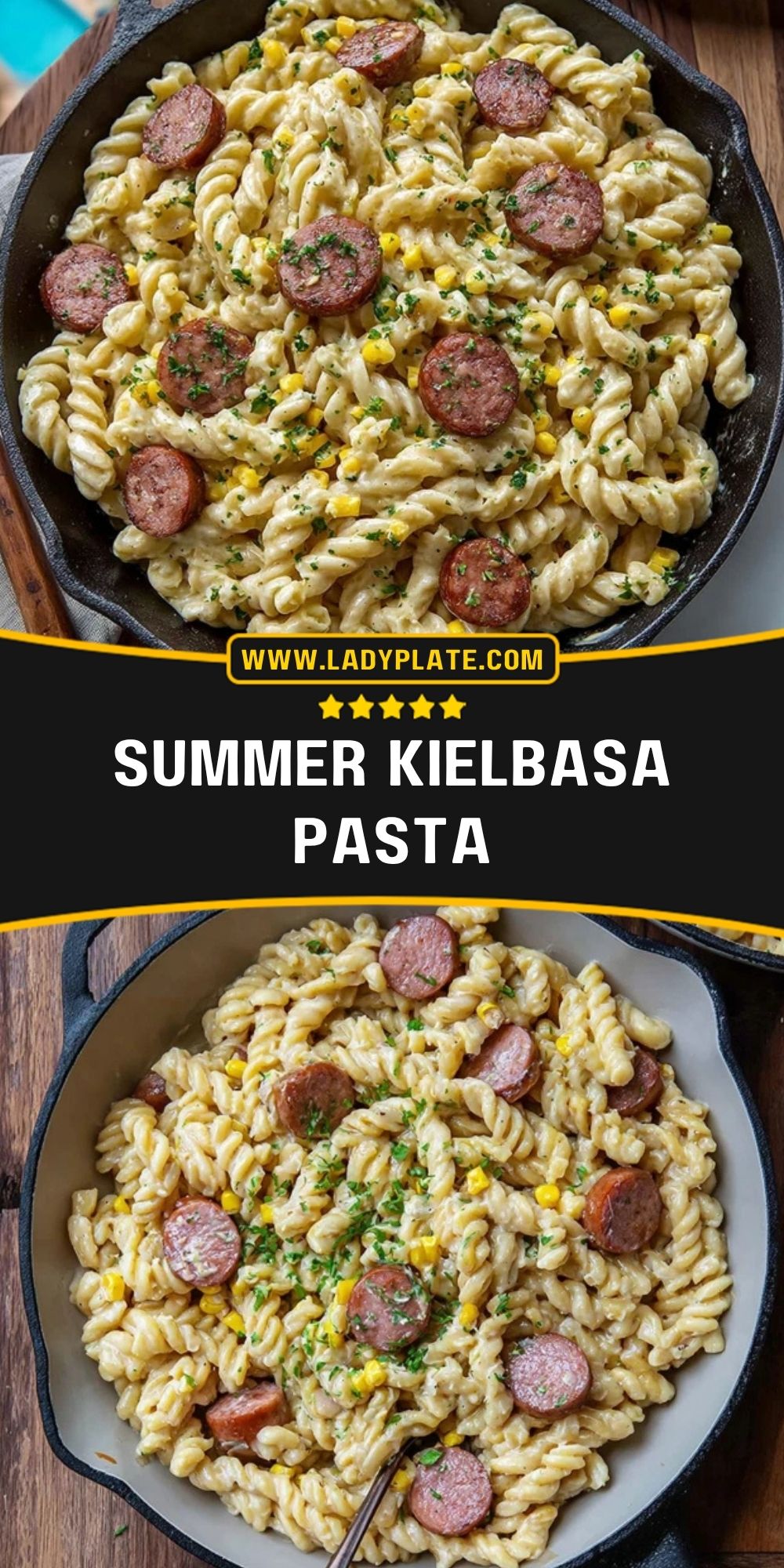 Keywords: kielbasa pasta, creamy sausage pasta, summer dinner