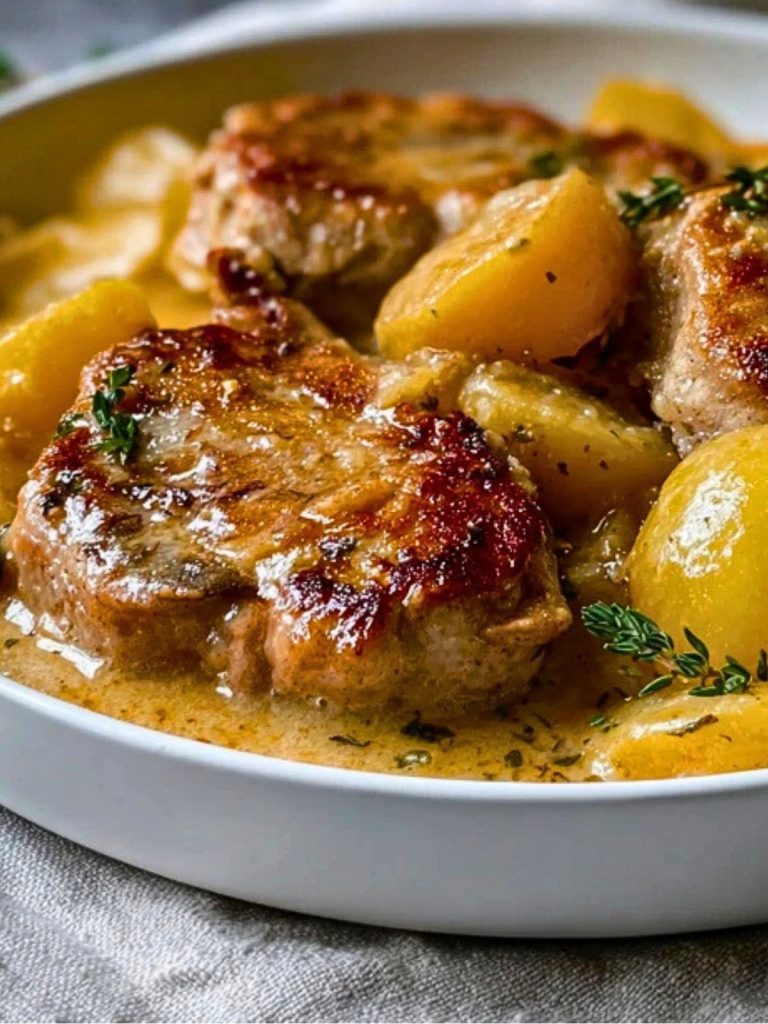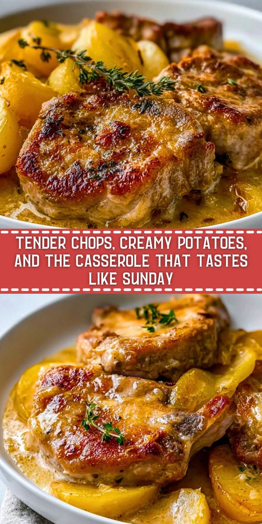 Tender Chops, Creamy Potatoes, and the Casserole That Tastes Like Sunday is a one-dish comfort food classic. Juicy bone-in pork chops are seared, nestled between golden Yukon potatoes, and baked in a creamy mushroom gravy. Perfect for cozy weekends or hearty family dinners, this dish brings all the flavors of slow cooking without the hassle.