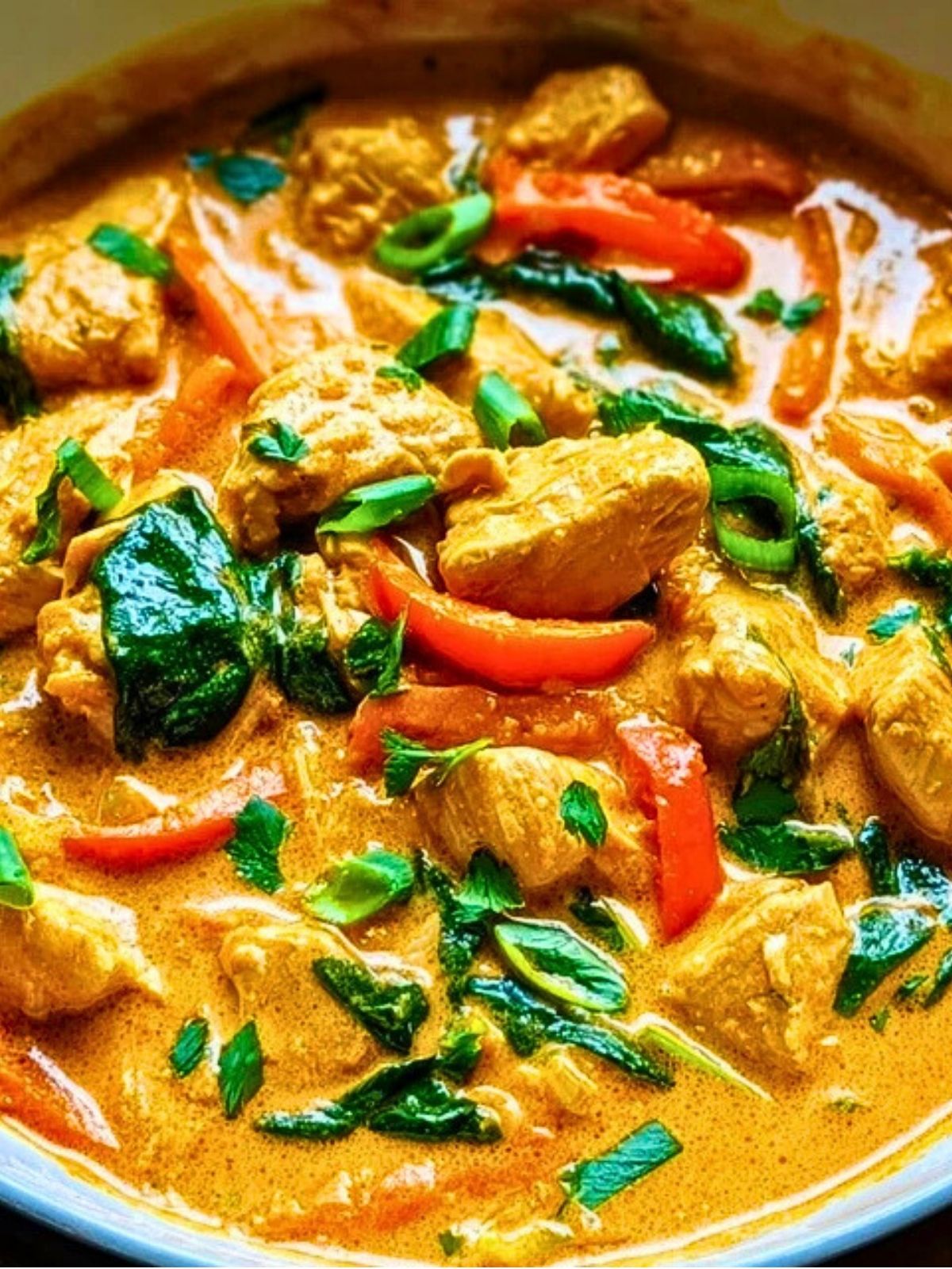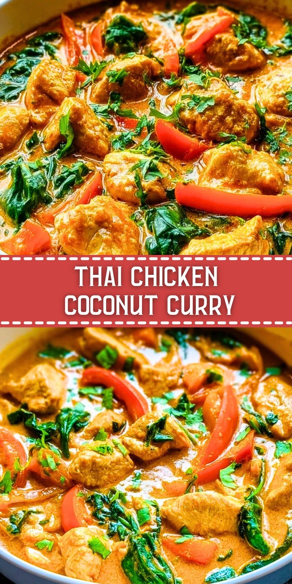 Thai Chicken Coconut Curry is a creamy, bold, and deeply comforting dish that comes together in under 30 minutes. Made with juicy chicken, red bell peppers, and fresh spinach, it’s all simmered in a rich coconut milk sauce infused with Thai red curry paste. Perfect for a weeknight meal that feels like a treat.