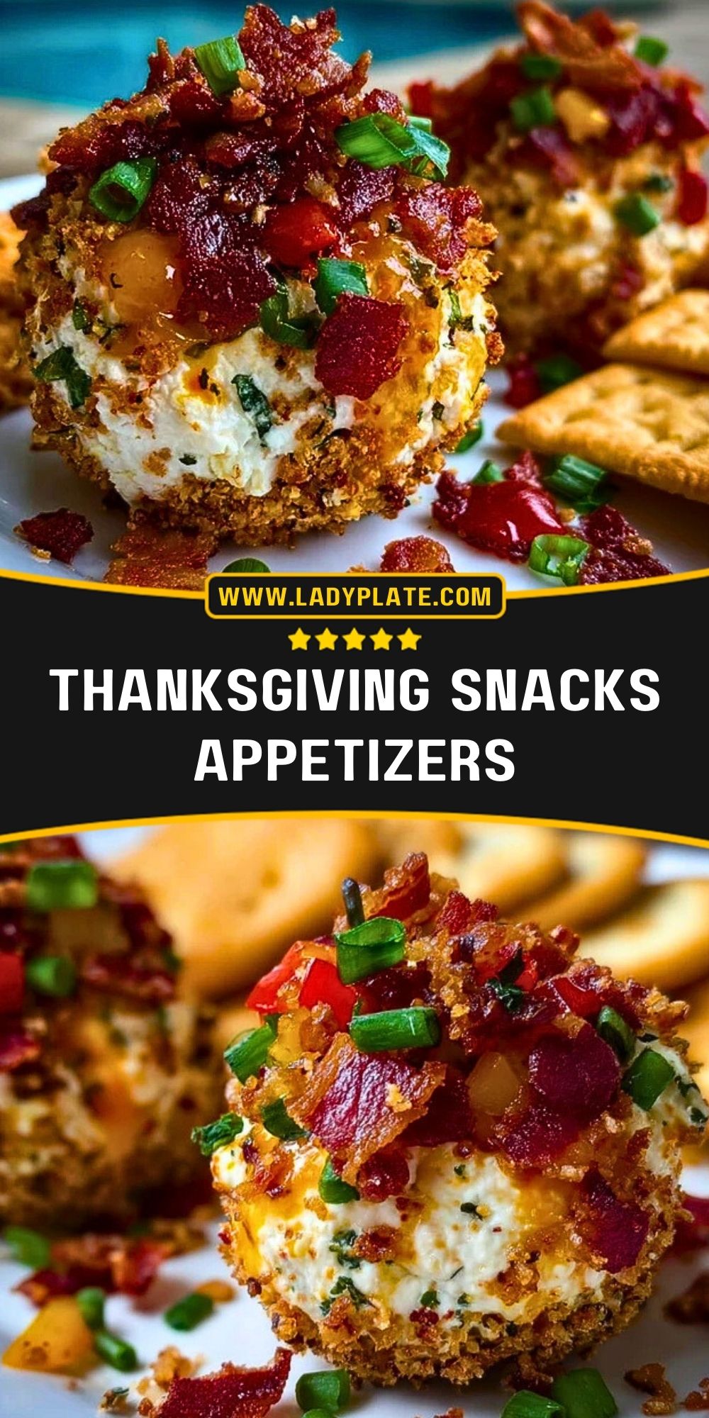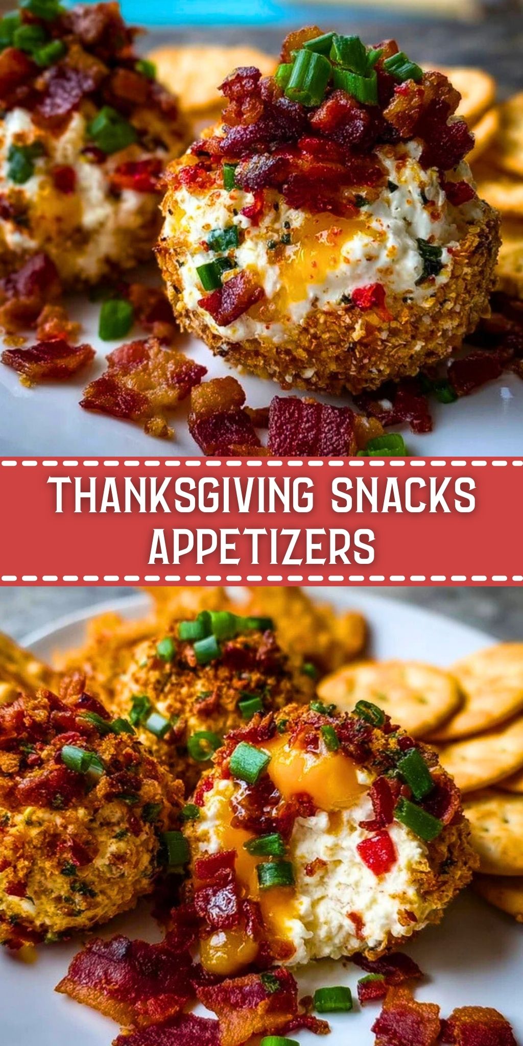 These Thanksgiving Snacks Appetizers are creamy, savory cheese balls packed with bacon, cheddar, and green onion, rolled in a crunchy cracker coating. They’re perfect for entertaining and can be made ahead for stress-free hosting.