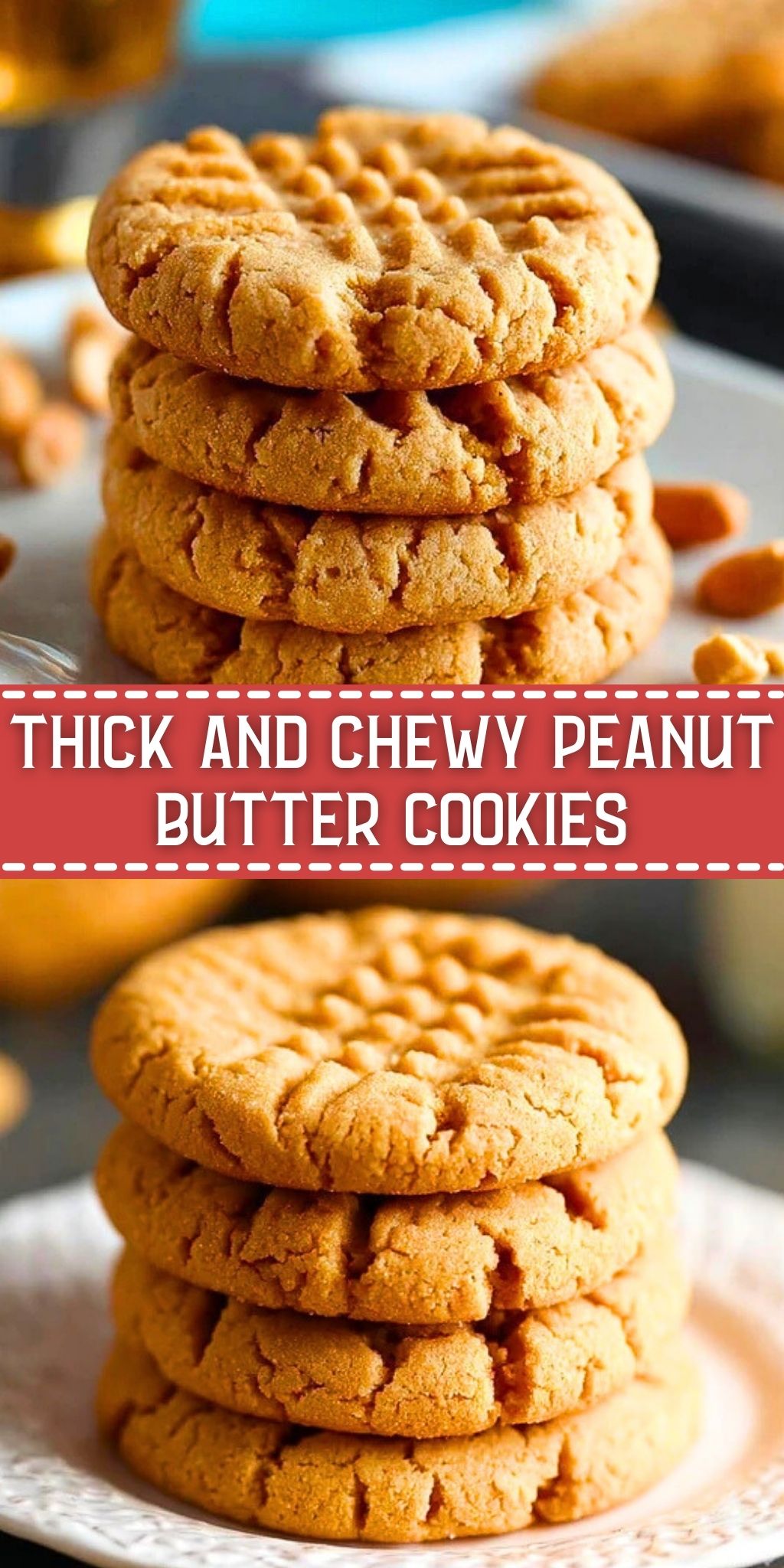 Once cooled, these Thick and Chewy Peanut Butter Cookies are perfect just as they are—no glaze, no drizzle, no add-ons needed. Serve them on a platter with milk, hot cocoa, or even crumbled into vanilla ice cream for an indulgent twist.