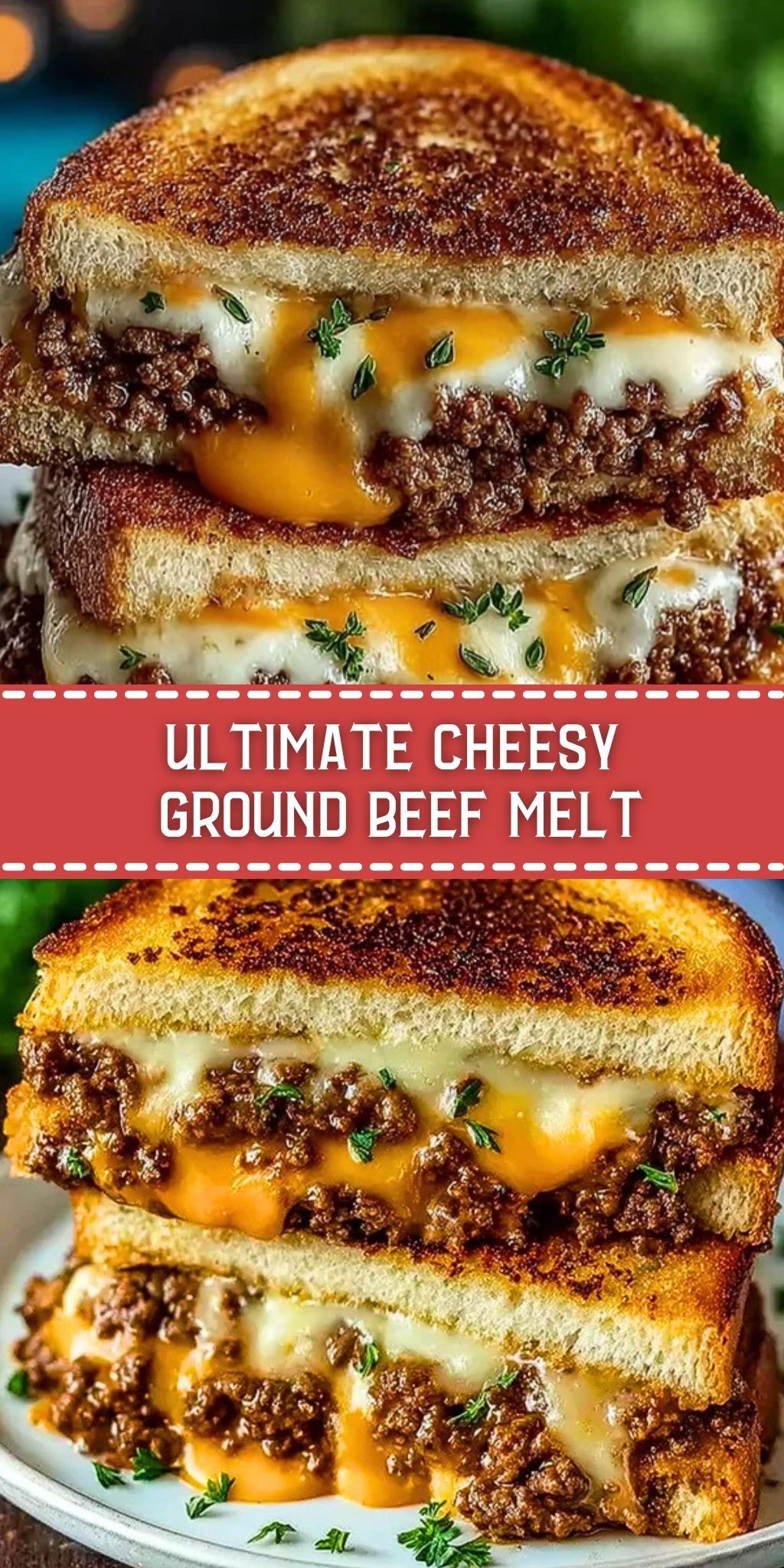 This Ultimate Cheesy Ground Beef Melt layers juicy seasoned beef and melty cheese between slices of buttery, crisp bread. It’s the ultimate comfort sandwich — quick to make and satisfying enough for lunch or dinner.