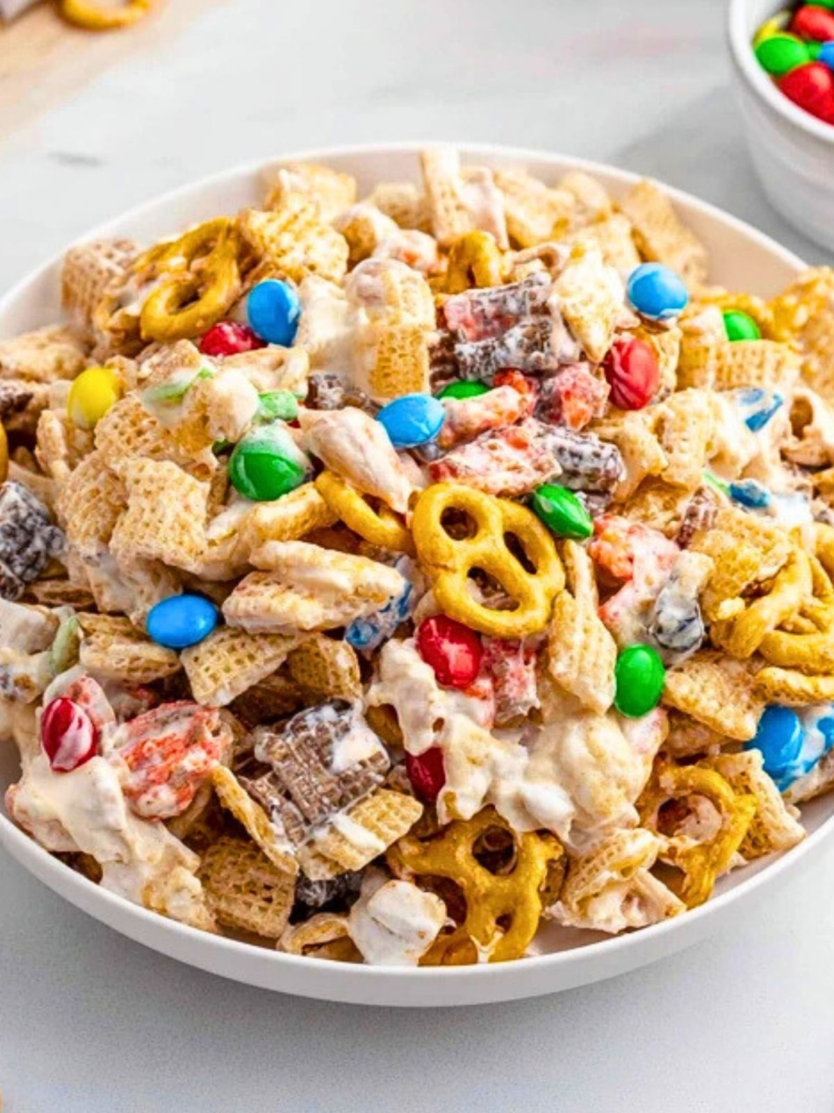 Loaded with cereal crunch, salty pretzels, and colorful candy-coated chocolate pieces all enveloped in creamy white chocolate, it hits every note of nostalgia and comfort. It’s ridiculously easy to make, easy to customize, and even easier to devour by the handful. Let’s break it down so you can whip up a batch (or two).